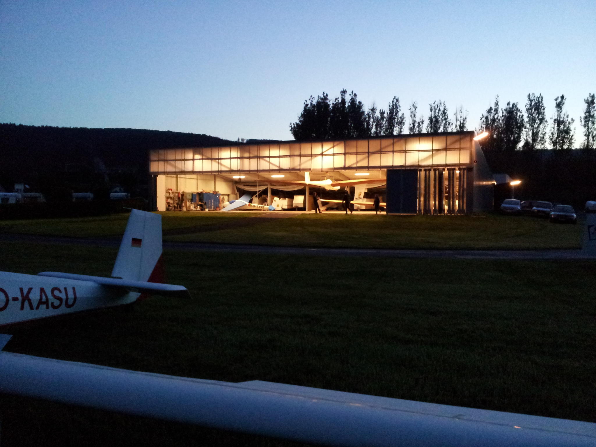 Kurz vor Sunset begannen dann die Segelflieger langsam damit, ihre Sportgeräte in Richtung Halle zu bewegen, zu putzen und einzuschachteln. Die Motorsegler durften wieder eine halbe Stunde länger, die auch genutzt wurde.