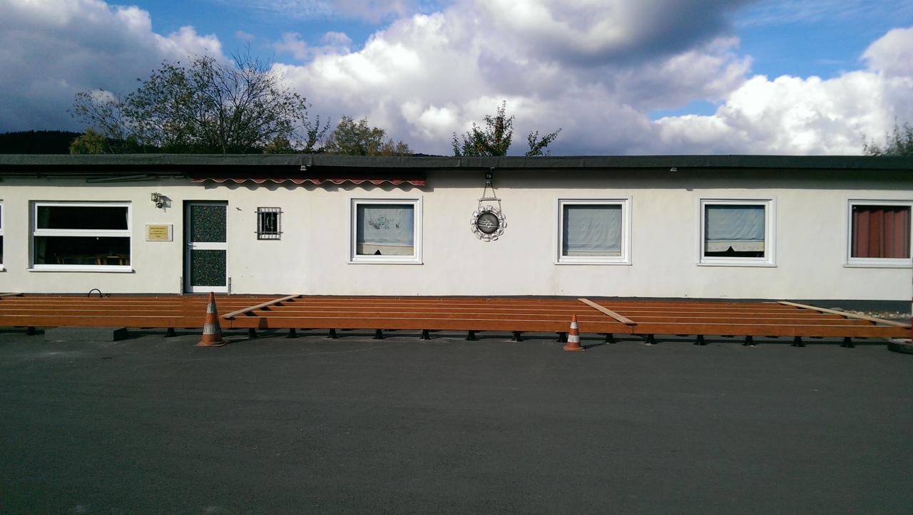 Parallel zum Lehrgang hat das Projektteam „Terrassenbau" den Außenbereich unseres Spatzennests mit einer schönen neuen Holzterrasse ausgestattet. Diese wird uns in Zukunft einladen, gesellige Stunden in