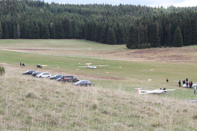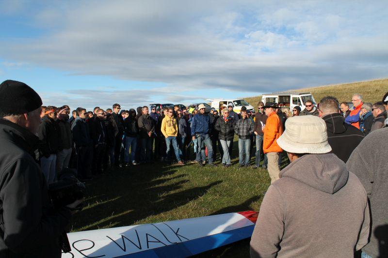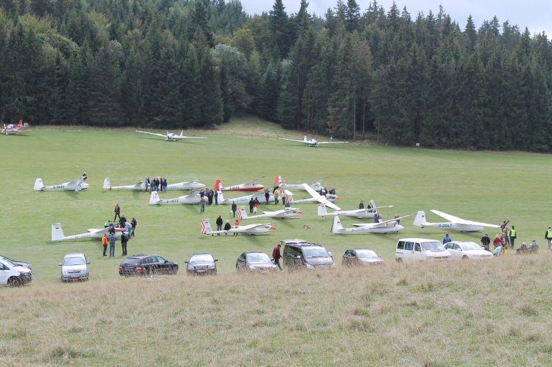 Gegen 12:00 Uhr konnte dann der zweite Durchgang angegangen werden. Hier war neben einem guten Start und einer sauberen Landung eine hochgezogene Fahrtkurve als Übung erforderlich. Wie bereits abzusehen war, wurde dieser Durchgang leider durch mehrere Schauer unterbrochen. Ausserdem gab es mehrere Unterbrechnungen aufgrund der niedrigen Wolken, die über das 980 m hoch gelegene Fluggelände zogen. Um 18:15 Uhr war es dann aber endlich geschafft und die Jury und Wettbewerbsleitung gaben das Ende des Wettbewerbes bekannt, so dass nach dem Abrüsten zum Abendessen und zur Abschlussfeier übergegangen werden konnte.