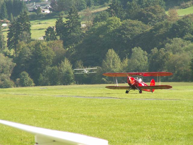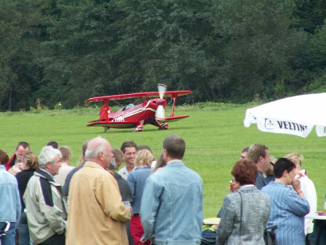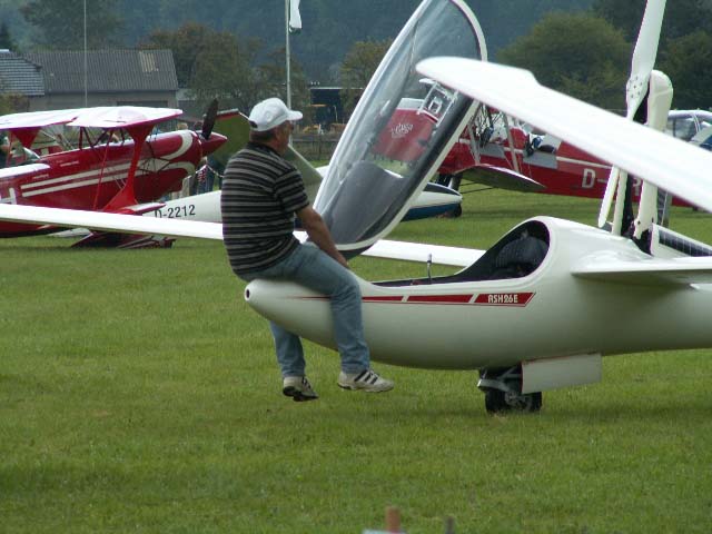 Die Highlights waren sicherlich wieder die Kunstflugvorführungen. Segelkunstflug wurde mit unserer ASK 21 und einem Pilatus vorgeführt. Der Pilatus gehört einer Haltergemeinschaft und ist in Meschede stationiert. Die Motorkunstflugvorführungen wurden mit einer Pitts, einem Doppeldecker mit 200 PS Motor, geflogen.