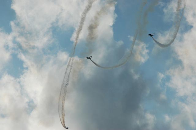 Auch der Sonntag lockte bei schönstem Wetter und angenehmen Temperaturen viele Besucher an und sowohl fliegerisch als auch kulinarisch hatte der LSC seinen Gästen einiges zu bieten. Das Acroteam Meschede zeigte sein grandioses Kunstflugprogramm, verschiedene Flugzeuge wie Do27, Stampe, Pitts und Hubschrauber luden zum Mitfliegen ein und die Modellflieger aus Eversberg flogen mit ihren Miniatur-Flugzeugen atemberaubende Flugmanöver. Sogar ein Fallschirmspringer fand trotz starkem Wind den Weg nach Oeventrop.