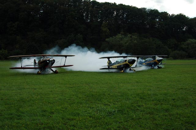 Am 29. und 30. August fand unser diesjähriges Flugplatzfest in Oeventrop auf den Ruhrwiesen statt. Der Samstag sorgte mit wenigen Schauern und starken Windböen zunächst noch für umher fliegendes Serviertes und verregnetes Bier. Doch am Nachmittag waren die Schauer vorüber und die verschiedenen fliegerischen Programmpunkte konnten von den vielen Besuchern auf dem Flugplatz bewundert werden.
