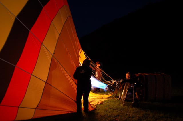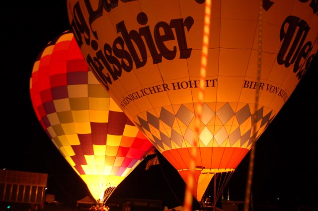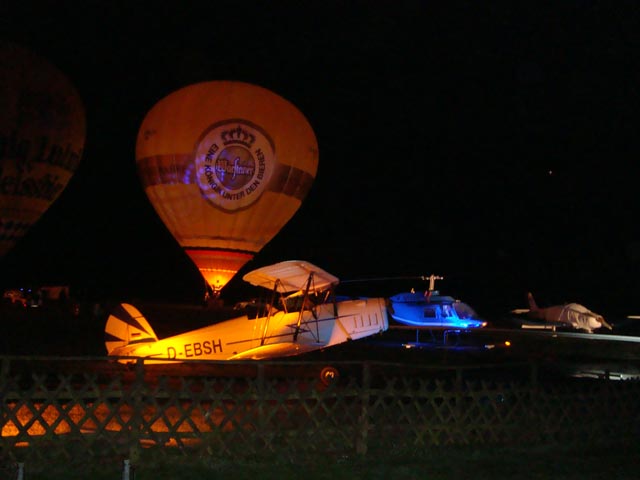 Das Wetter am Abend hielt sich auch und so bauten die Heißluftballone auf dem Fluggelände zum Night Glow auf. Das abwechselnde Aufleuchten der Ballone wurde von Musik und einer Light Show untermalt und begeisterte die Anwesenden zum wiederholten Mal.