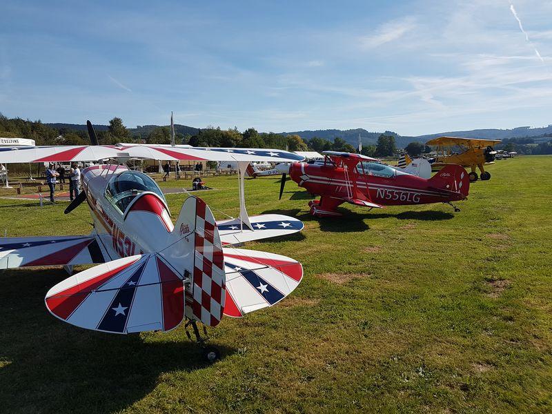 Besonders bestaunt wurden die spektakulären Motorkunstflugdarbietungen der Piloten aus Meschede-Schüren mit ihren zwei Pitts- und dem Skybolt Doppeldecker. Wie die Modellpiloten wurden die Maschinen mit absolut höchster Präzision gesteuert und zeichneten ihre Flugfiguren an den Himmel. Vielen Gäste nutzen auch die Gastflugangebote und hoben selbst zu einem Rundflug über das Sauerland ab. Der Ausfall des angekündigten Hubschraubers und der T6, beide mussten aus technischen Gründen leider kurzfristig absagen, konnte so noch gut kompensiert werden.