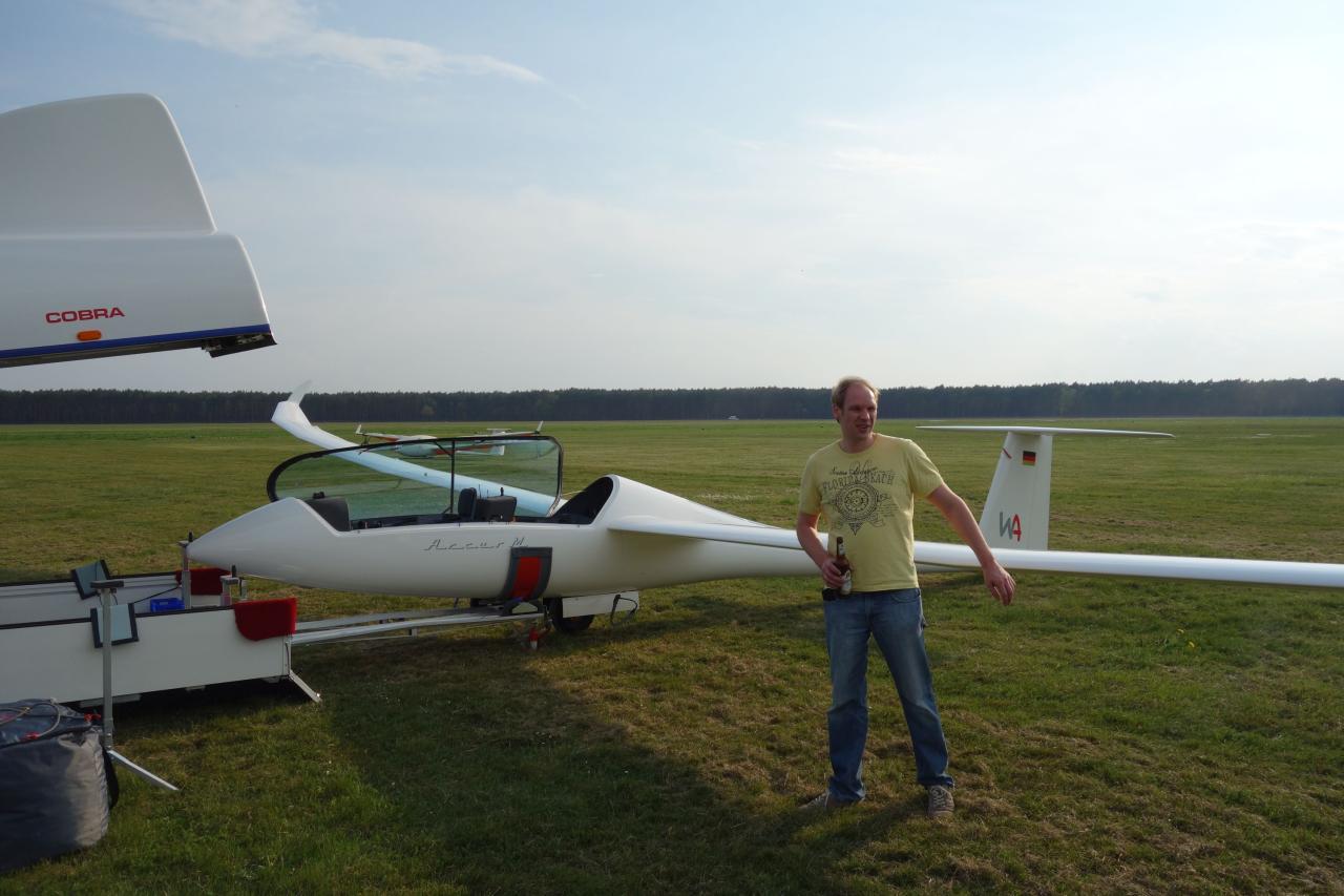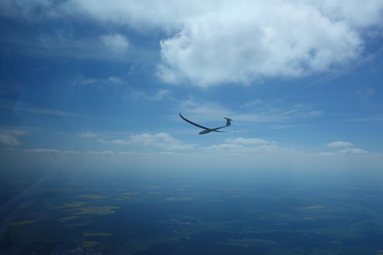 Da ich die letzten drei Tage arbeiten musste hat mich André dankenswerterweise vertreten. Er ist dann mit Marco in den Genuss des besten Tages gekommen. Am Samstag den 03.05. standen 700 FAI-Kilometer auf dem Programm. Die beiden haben die Aufgabe zügig vollendet und konnten den Flug danach sogar noch auf 848 km strecken.