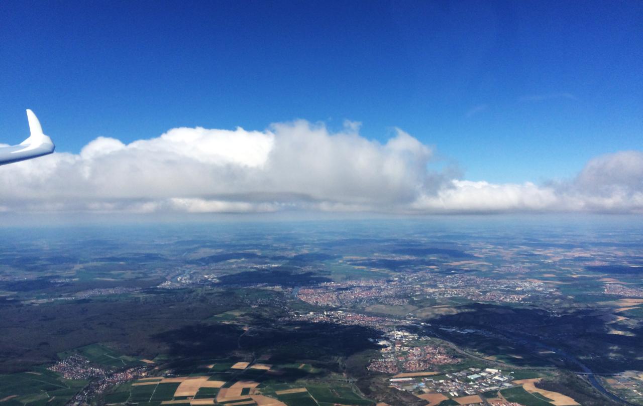 René meldete voraus gute Steigwerte und zuverlässige Wetterentwicklung. Auch Tim und André fanden schnell Anschluss und konnten loslegen. Es war ein absoluter Genuss, und diese grandiose Optik sieht man wirklich selten. Mit Rückenwind aus nordöstlichen Richtungen wedelten die Flugzeuge unter den ersten Wolken nach Süden.