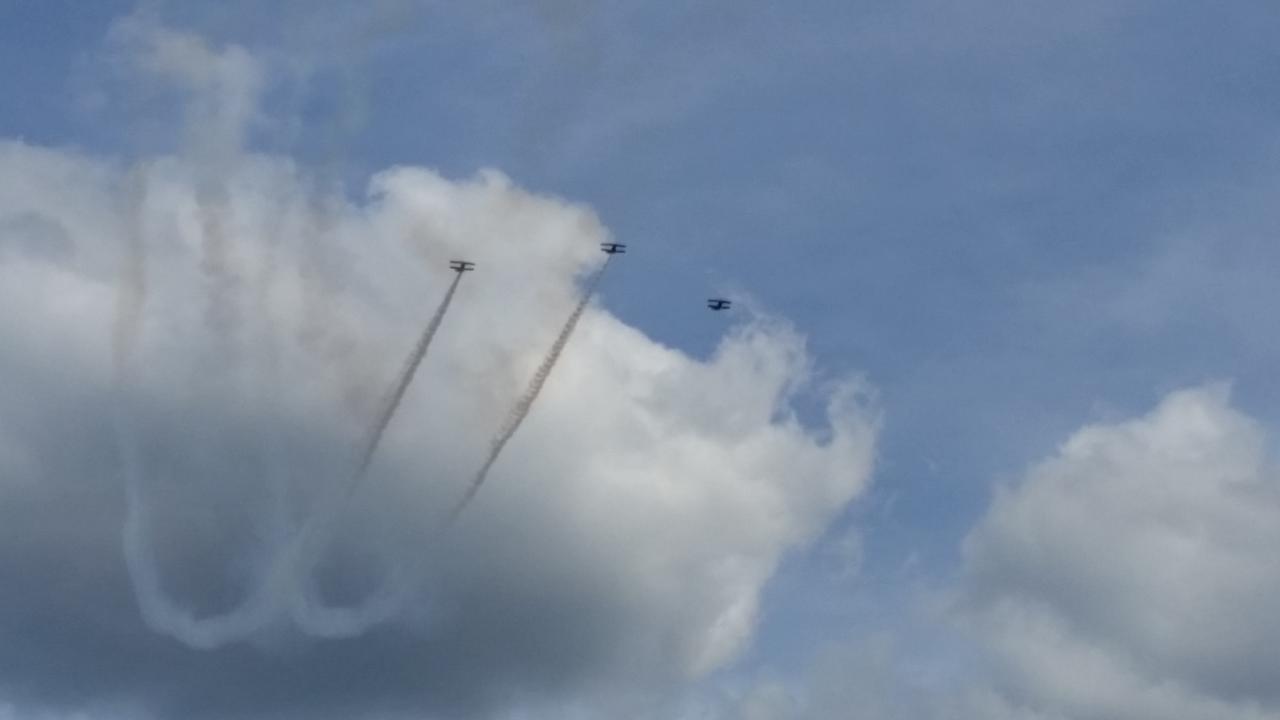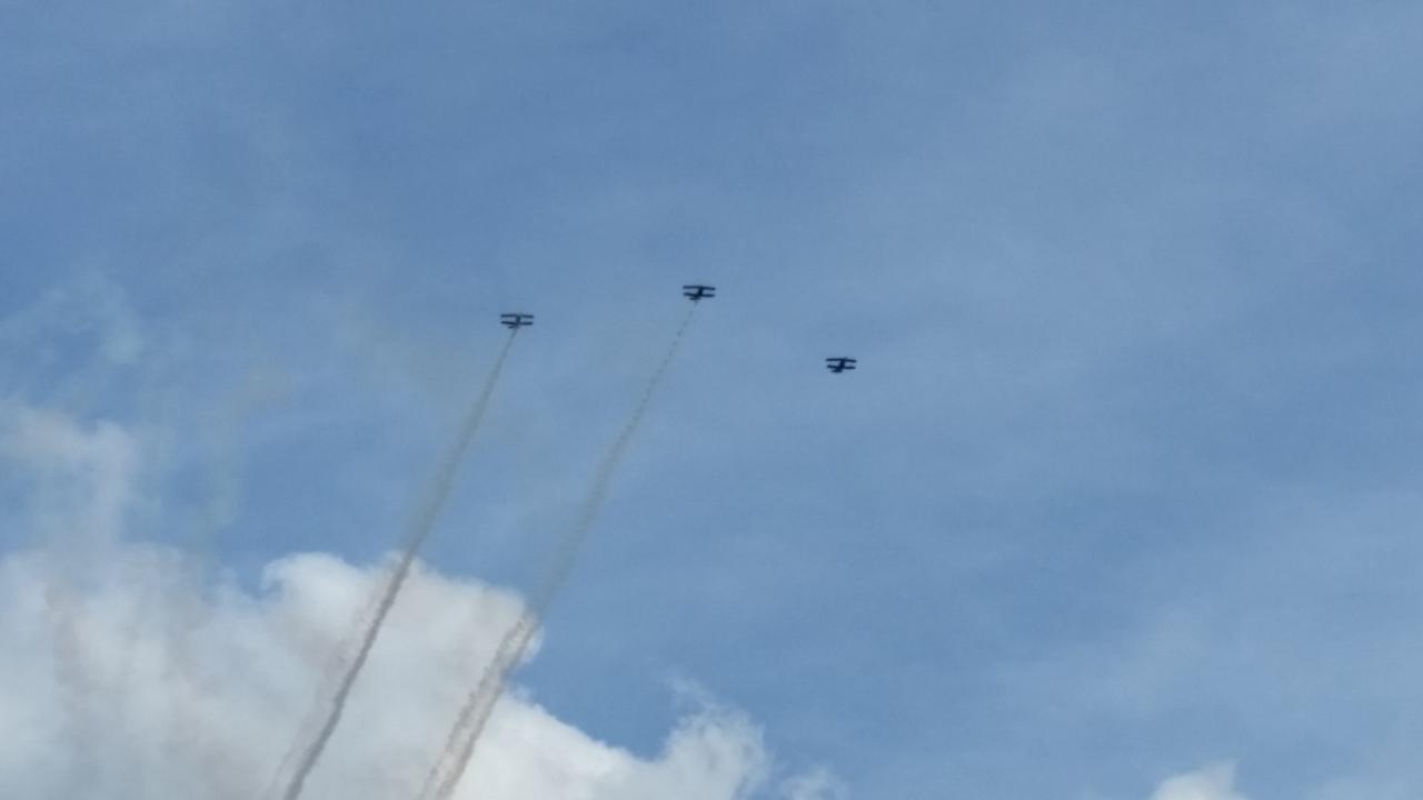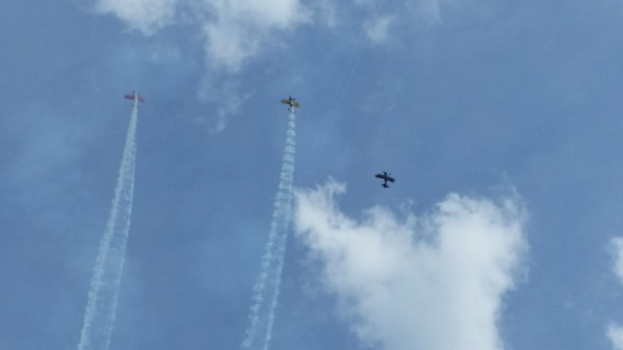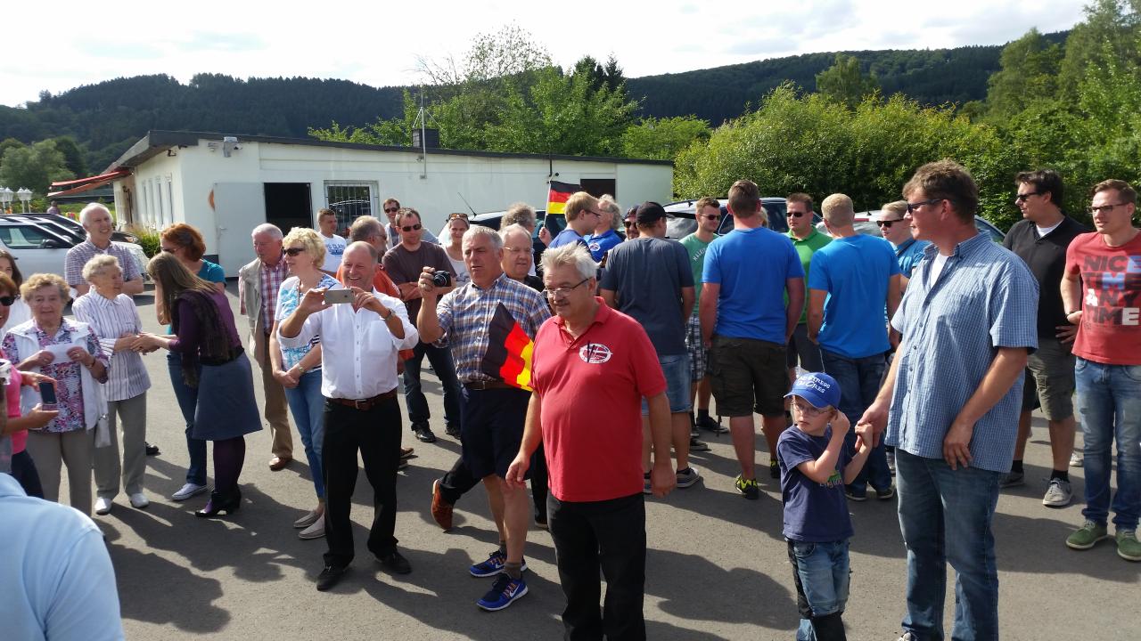 Wir alle wollten es uns nicht nehmen lassen, den Beiden persönlich zu gratulieren! Es waren wirklich viele gekommen, der Flugplatz war schwarz/rot/gold geschmückt und viele Deutschland-Fahnen wurden geschwenkt. Der 1. Vorsitzende Peter Enste hat natürlich offiziell im Namen des Vereins gratuliert. Die obligatorische Rakete hat selbstverständlich auch nicht gefehlt. Alle gemeinsam haben wir das Lied "Auf EUCH (Anderas Bourani)" angestimmt und den Beiden gewidmet. Wir haben also diesen tollen Erfolg gebührend gefeiert, die Beiden haben sich darüber sehr gefreut! Besonderes Highlight war sicherlich die Kunstflugvorführung des Acroteam Meschede, die eine beeindruckende Flugvorführung an den Oeventroper Himmel zauberten.