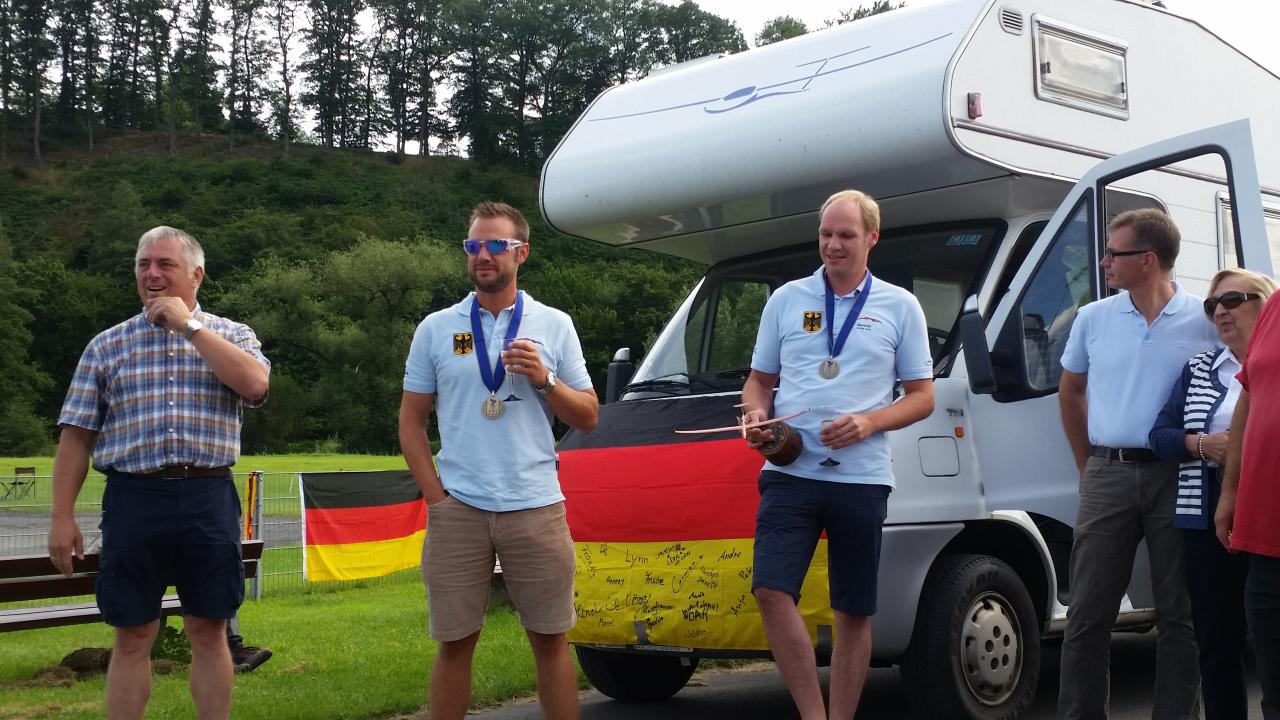 Vor gut drei Wochen haben wir die beiden Teilnehmer der Segelflug-EM 2015 mit einer Überraschungsparty in Oeventrop verabschiedet. Nach einem äußerst spannendem Wettbewerb und insgesamt 9 Wertungstagen lagen Marco Hanses und Sebastian Beule auf dem dritten Platz und haben damit die Bronzemedaille gewonnen!