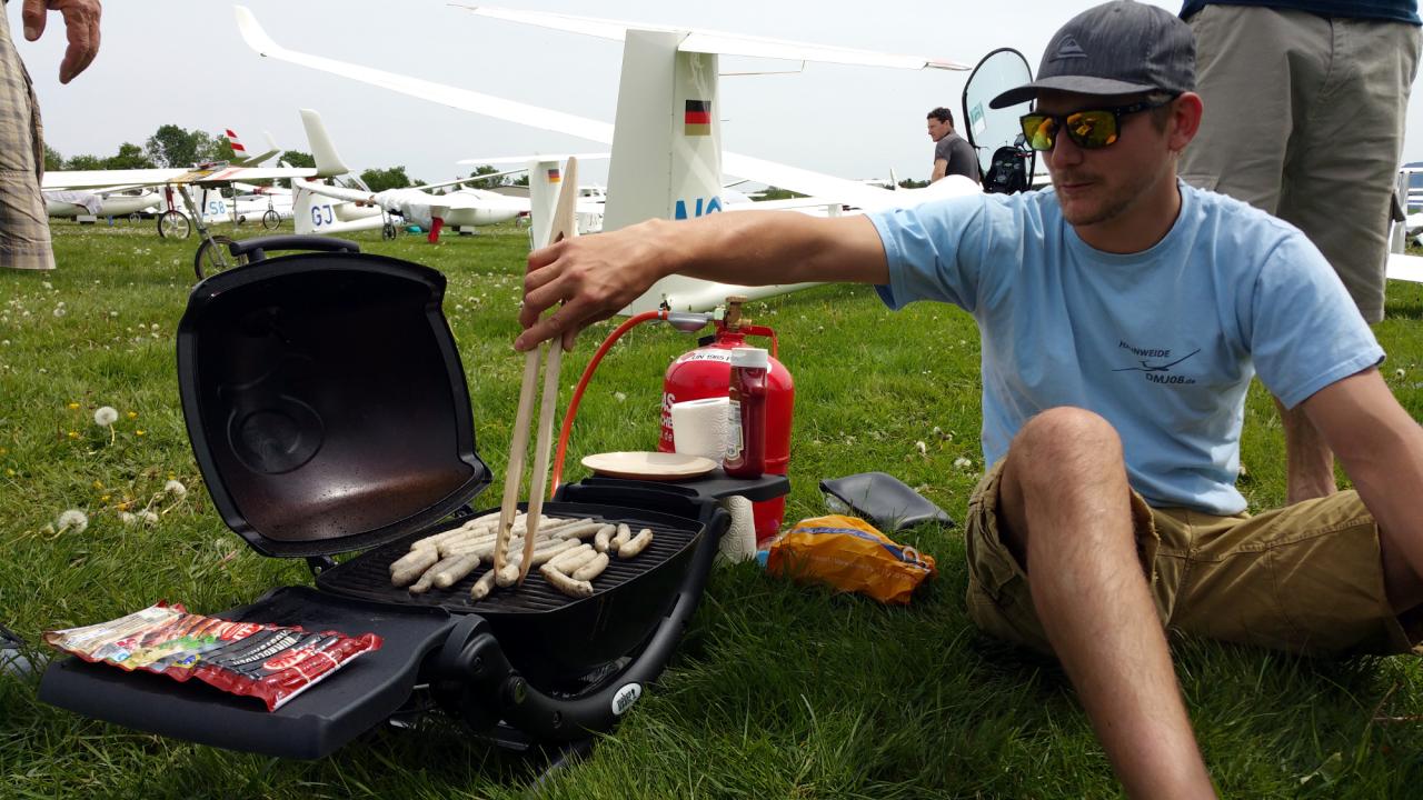 Die folgenden 2 Wertungstage waren von Warmluft geprägt. Es hieß also lange auf den Start warten, und dann bei durchwachsener Thermik schwitzen und kämpfen. Da war es schön, dass wir zu zweit im Flugzeug waren und sich jeder seine Schaffenspause gönnen konnte.