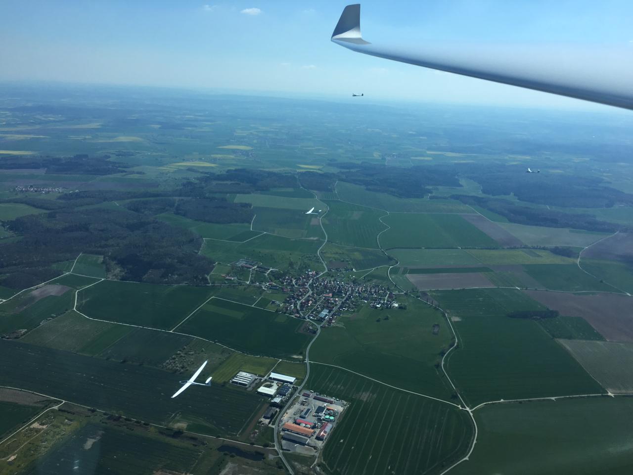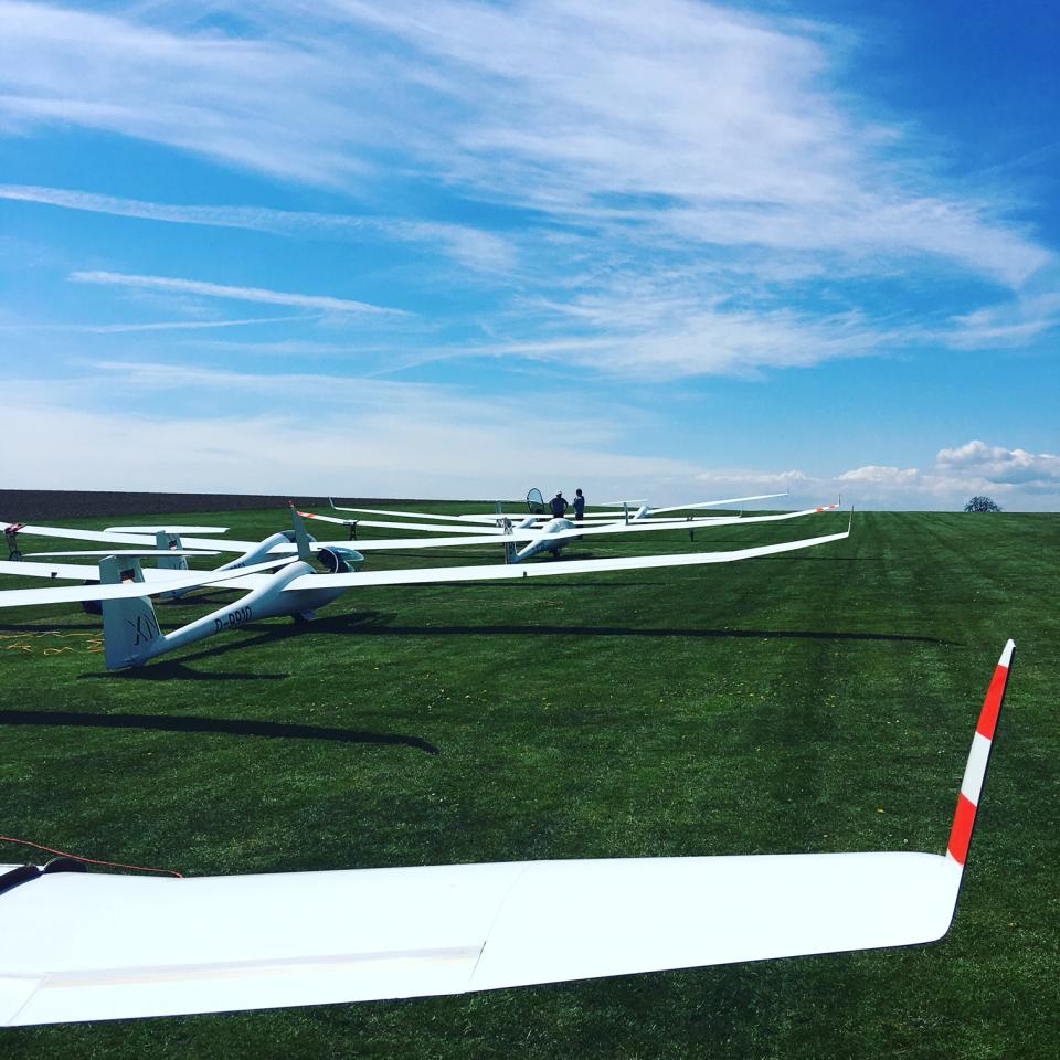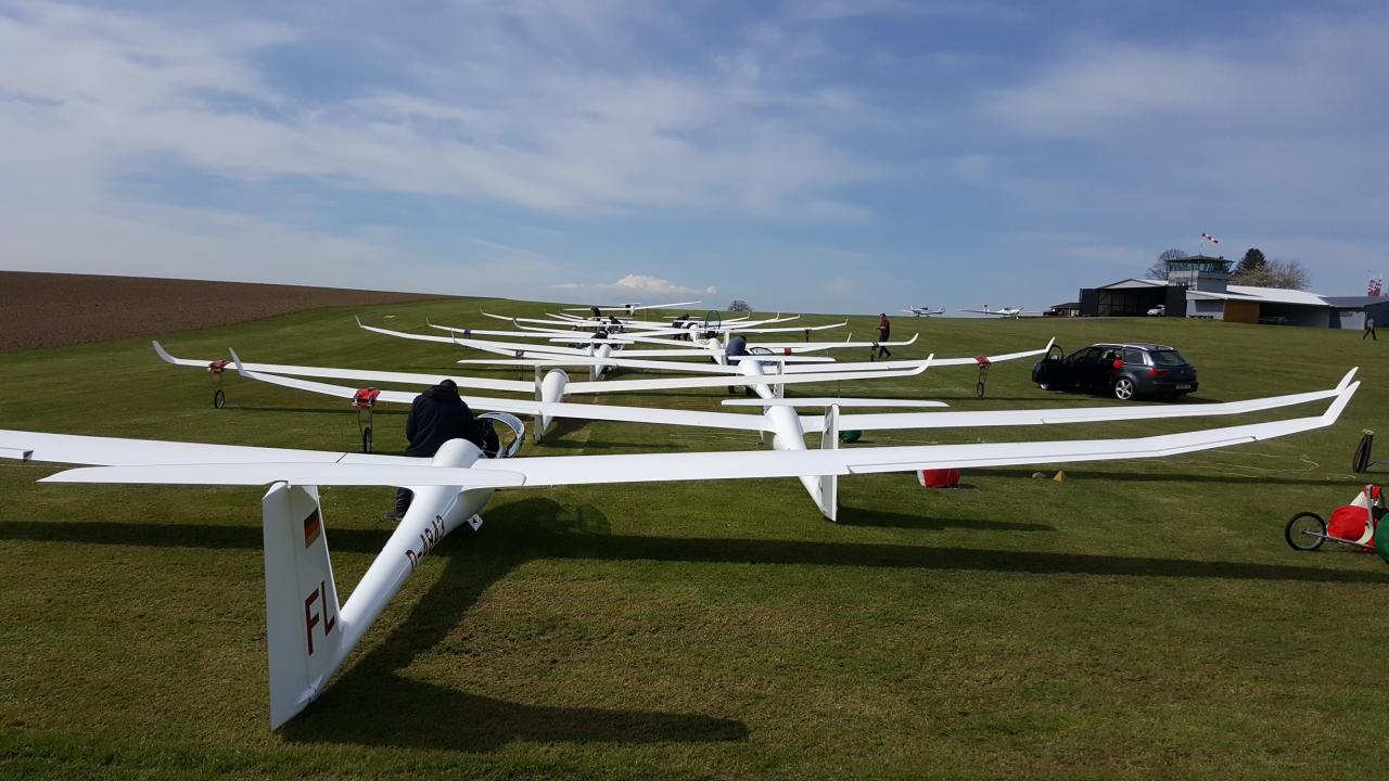 Gestern war wieder erwarten ein sehr guter Tag. Das Feld lag eng beisammen wir flogen schnelle Schnitte zwischen 113 und 121 km / h. Auf der kleinen Aufgabe von 150 km war selbst der kleinste Fehler zuviel. Ich konnte bis vor die letzte Wende in der Führungsgruppe mithalten. Dann habe ich leider einen taktisch Fehler gemacht, welcher zu einem langsamen Endanflug führte, so dass ich von einigen überholt wurde.Heute (01.05.2016) führt die Aufgabe wieder bei starkem Wind Richtung Osten. Schauen wir mal!