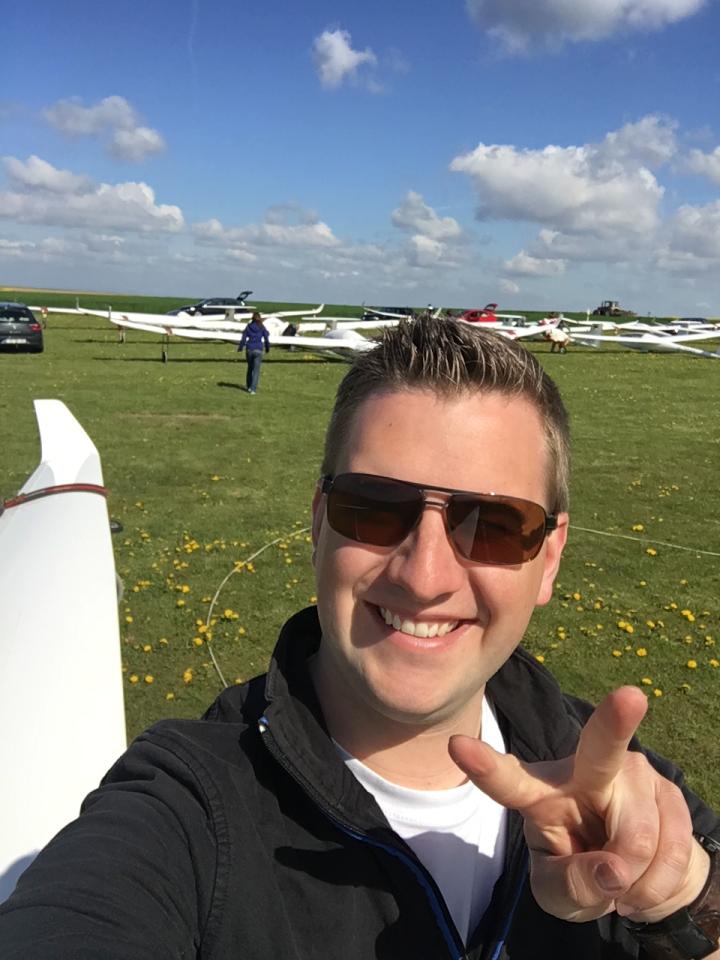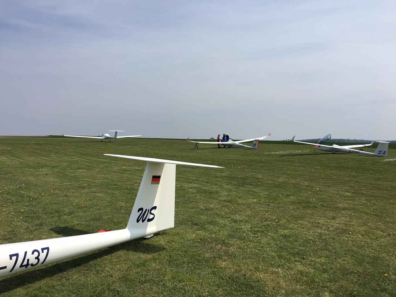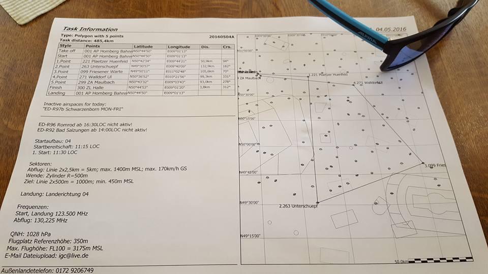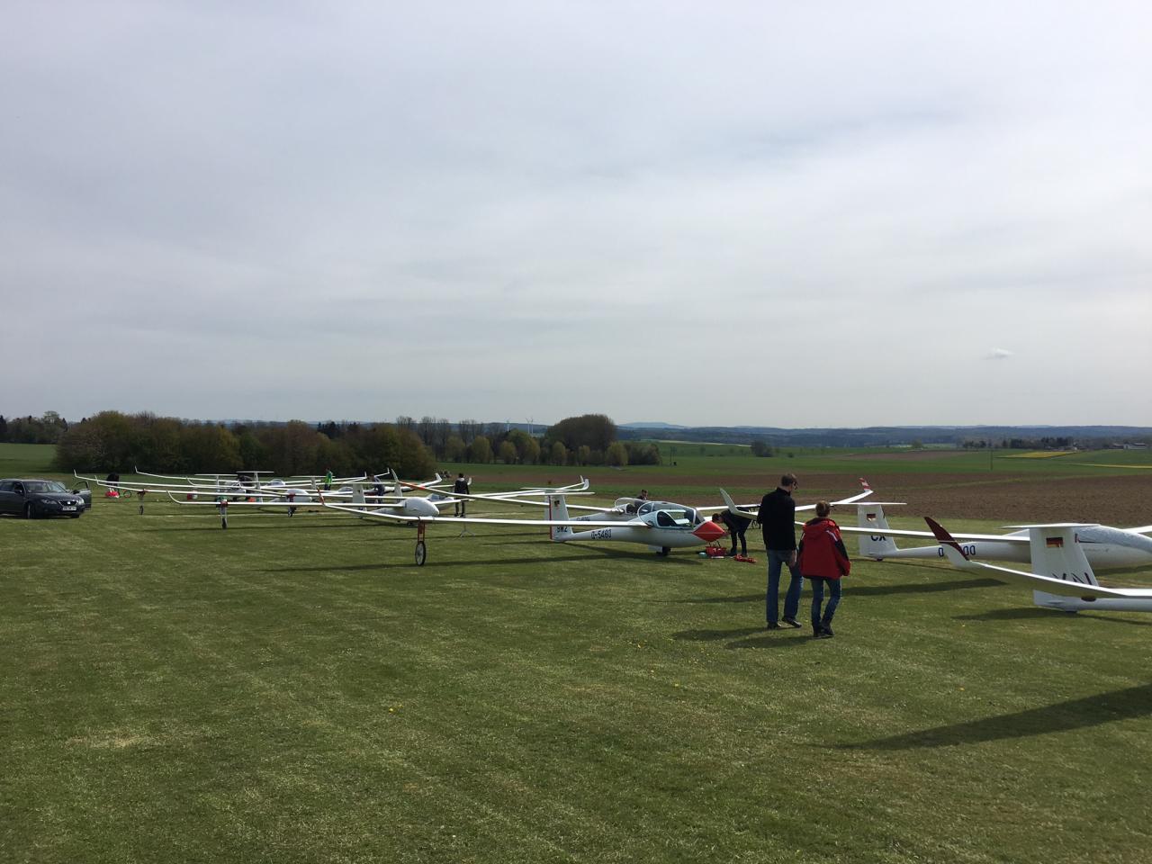 Gestern war wieder erwarten ein sehr guter Tag. Das Feld lag eng beisammen wir flogen schnelle Schnitte zwischen 113 und 121 km / h. Auf der kleinen Aufgabe von 150 km war selbst der kleinste Fehler zuviel. Ich konnte bis vor die letzte Wende in der Führungsgruppe mithalten. Dann habe ich leider einen taktisch Fehler gemacht, welcher zu einem langsamen Endanflug führte, so dass ich von einigen überholt wurde.Heute (01.05.2016) führt die Aufgabe wieder bei starkem Wind Richtung Osten. Schauen wir mal!
