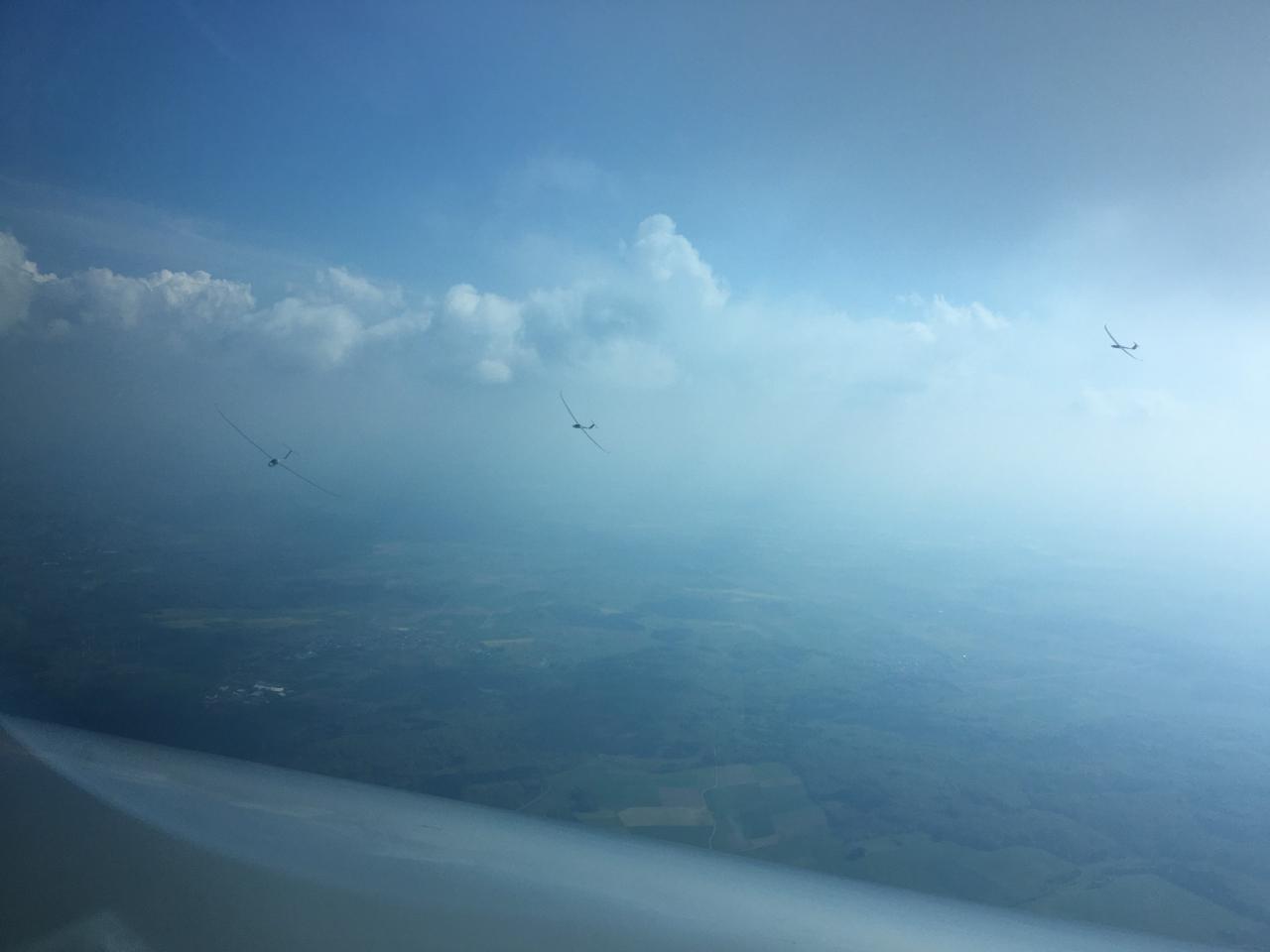 Vor der Abfluglinie bildeten sich zwei Pulks, einer flog etwas niedriger ab und konnte den Verlust über den kurzen Flug kaum mehr aufholen, da die Wolken knapp unter der Basis nochmal deutlich besser zogen. Auch mich hat es erwischt, sodass ich dauerhaft "hinten und etwas tiefer" unterwegs war.