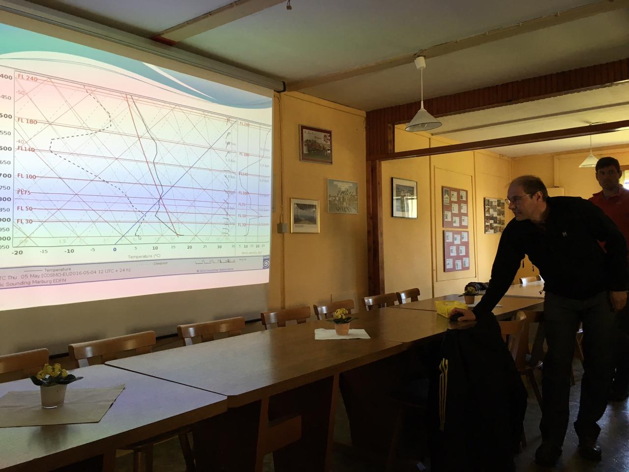 Der Grand Prix in Homberg hat einen freundschaftlichen Charakter und soll in erster Linie dem Training und der Vorbereitung auf Wettbewerbe dienen. Deshalb analysieren wir jeden Tag in einem tollen Debriefing noch einmal komplett sämtliche Loggerflugspuren. Diese werden mit einem Auswertungsprogramm übereinander gelegt und abgespielt, sodass jeder falsche Kreis oder jede schlechte Linie sofort aufgedeckt wird. Uns wurde unter anderem Bewusst, wie schnell man eigentlich bei starkem Gegenwind vorfliegen muss, um die optimale Gleitperformance eines schweren Standartklasse Flugzeuges optimal einzusetzen. Robert Schröder (Nationalmannschaft) erzählte auch von vielen Internationalen Erfahrungen, welche ihm Heute zu gute kamen. Für alle Beteiligten ein wahnsinniger Lerneffekt in diesem erfahrenem Teilnehmerfeld!