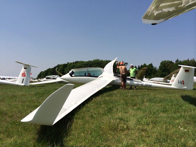 Der Tag war eigentlich gut, jedoch schirmte es plötzlich sehr stark ab und die Bedingungen änderten sich schlagartig von sehr gut auf maginal. Dann haben Rene und Tim leider einen Fehler gemacht und mussten kurz vor dem Platz den Motor ziehen. Andre hatte sich zuvor schon auf einem Flugplatz niedergelassen und ist nach einem Windenrstart wieder thermisch zurück geflogen.