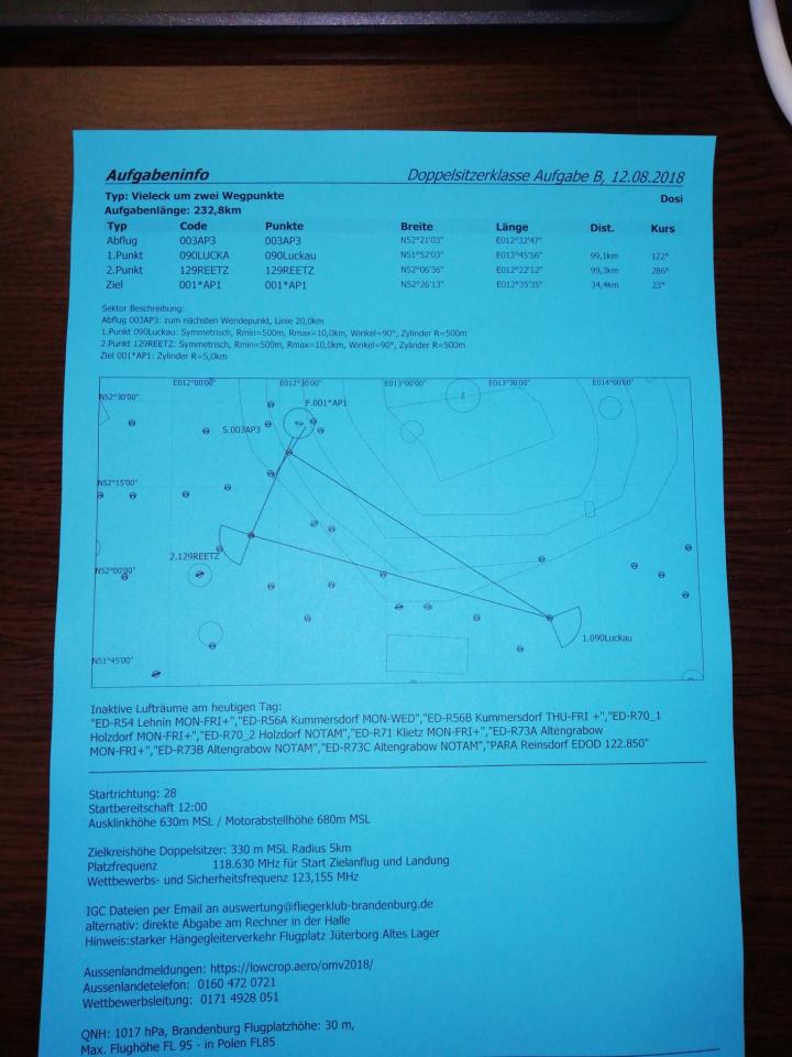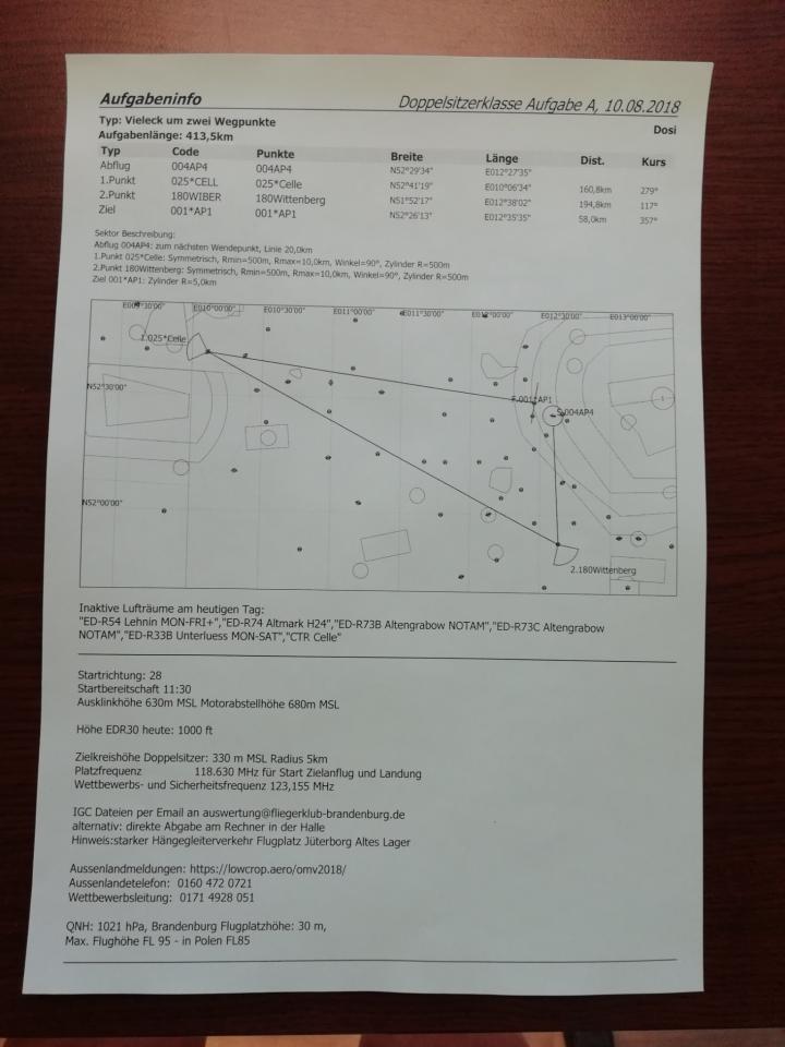 Um 10:00 Uhr hat das Briefing stattgefunden. Für die Doppelsitzerklasse gibt es eine A- und eine B-Aufgabe. Starbereitschaft ist um 11:30 Uhr.