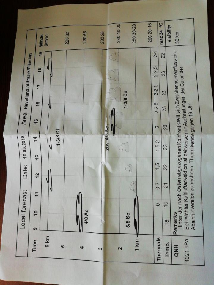 Die DoSi-Klasse fliegt die A-Aufgabe: ein Vieleck mit 4 Wegpunkten und eine Länge von 449 km. Marco und Sebastian werden sich wieder mit Blauthermik anfreunden müssen. Zum nachmittag hin gibt es dann wohl wieder einige Wolken mit einer Basishöhe von 2.000 m.