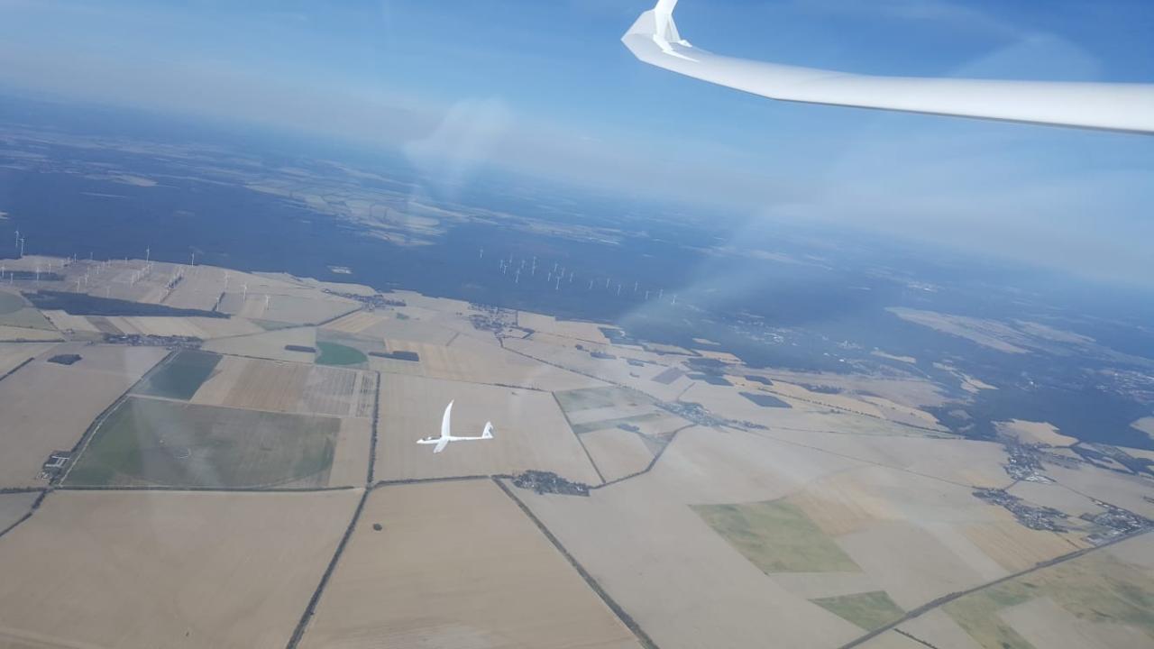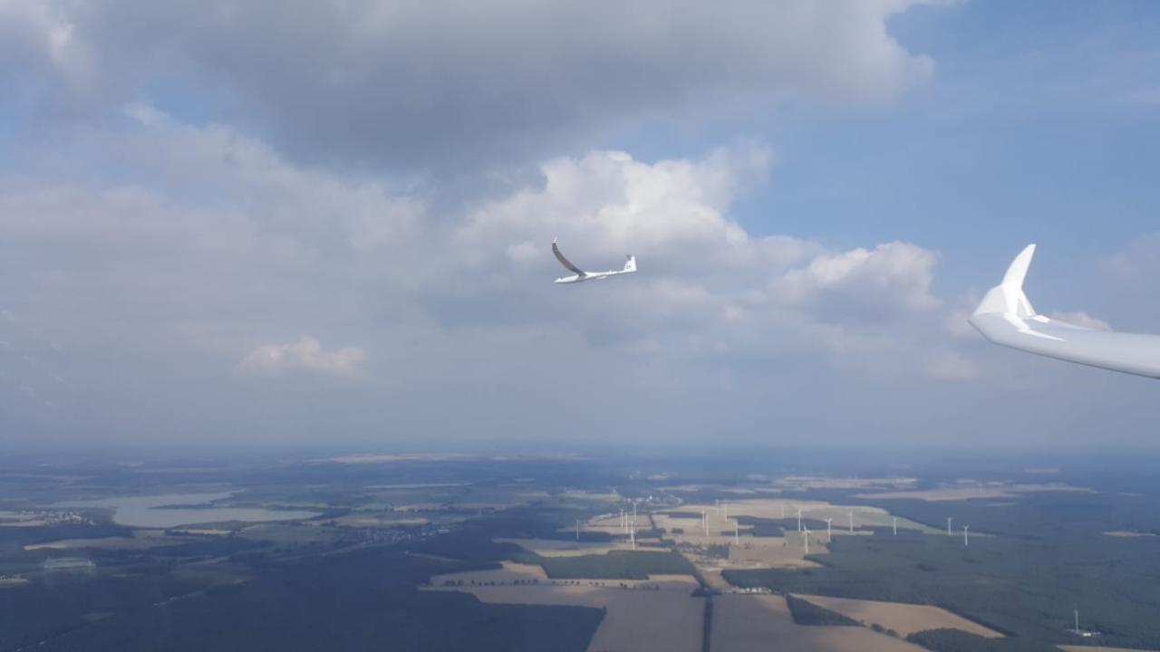 Alle Flugzeuge sind nun in der Luft. Das Wetter sieht gut aus. Hier nochmal die Aufgabe zum Nachlesen: https://www.soaringspot.com/de/omv-brandenburg-2018/tasks/doppelsitzerklasse/task-2-on-2018-08-10.