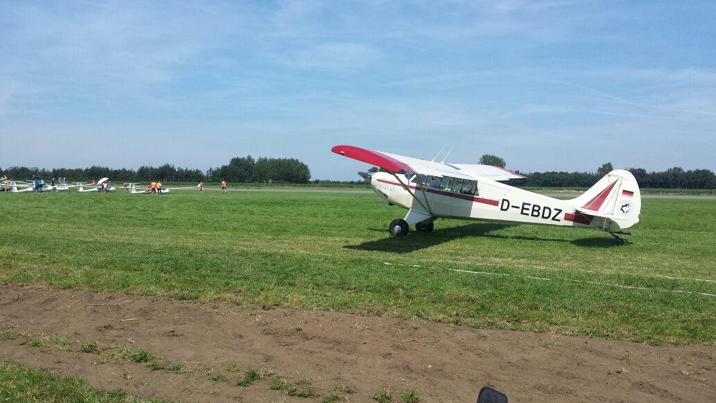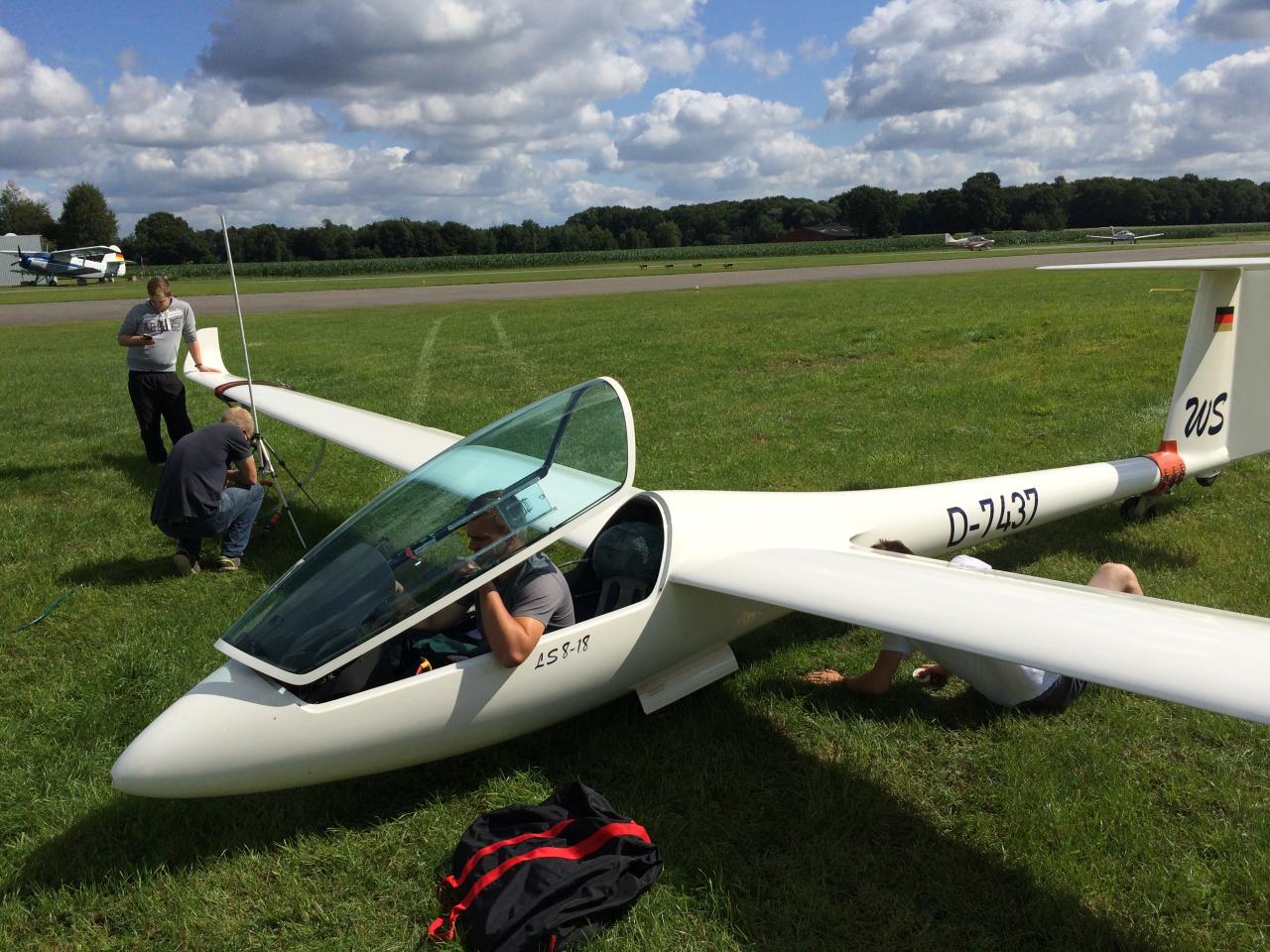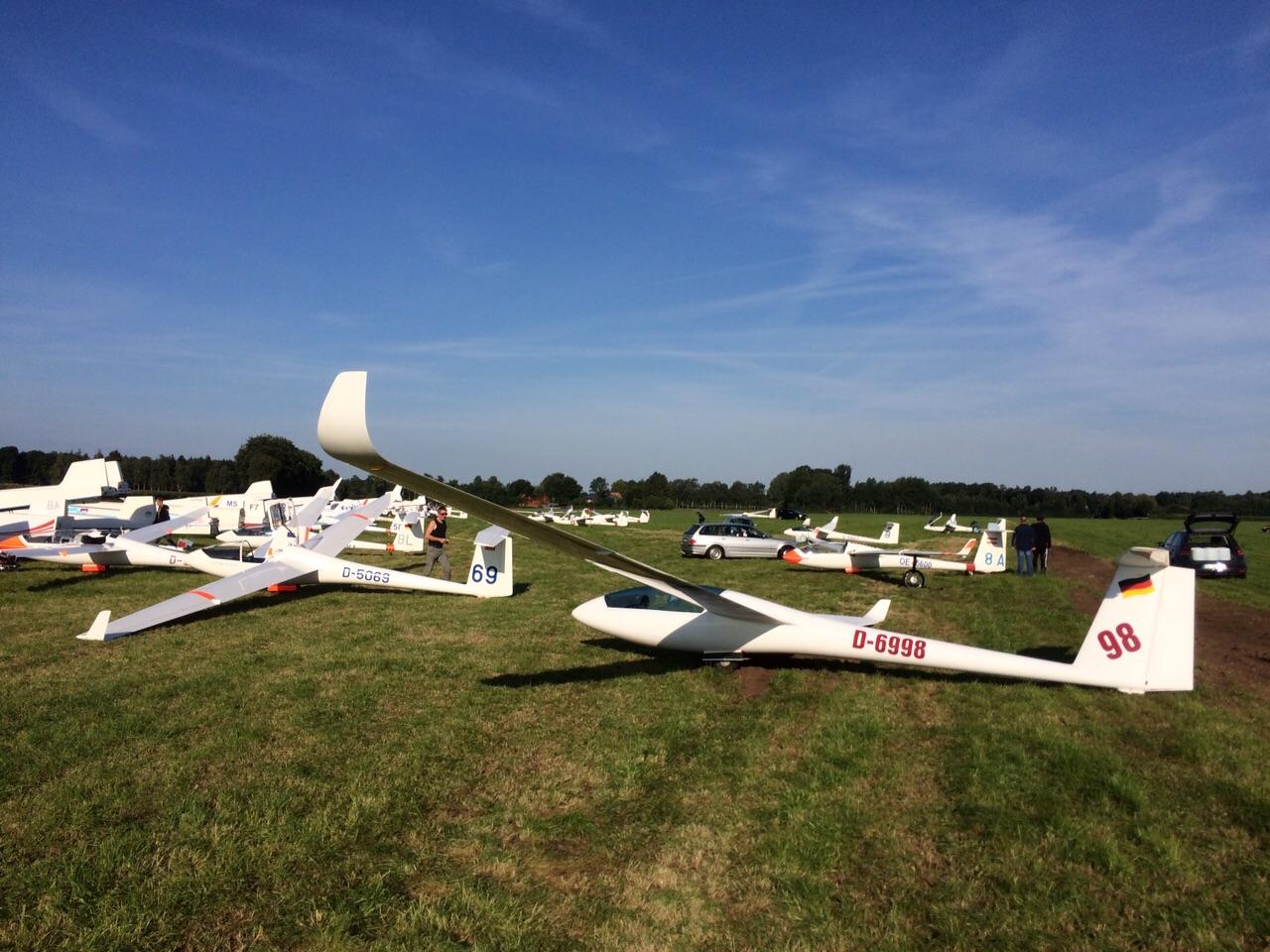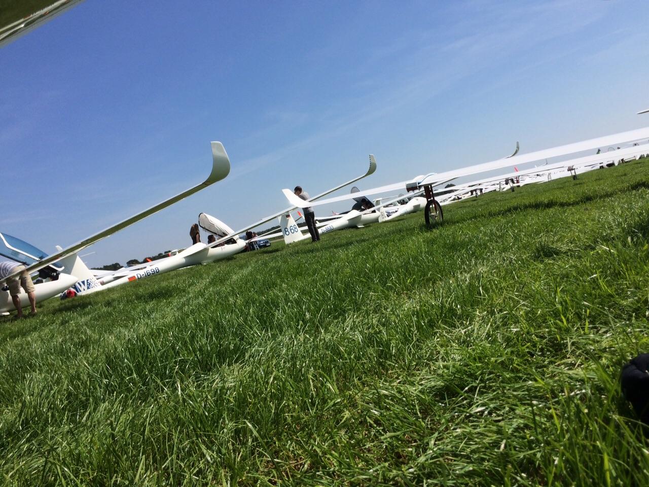 (Daniel Büenfeld). Für den heutigen Tag hatte sich Andre nochmal vorgenommen die LS8 gemütlich über dem Münsterland auszuführen und dabei ein paar Plätze gut zu machen. Leider hat sich das Wetter aber erst sehr spät am Tag entwickelt so dass die Wettbewerbsleitung die Standardklasse bereits um 12.00 Uhr neutralisiert hat. Wir haben den Tag dann genutzt um unser Lager bereits ein wenig aufzuräumen und bei Dodgeball Cup in Stadtlohn vorbei zu schauen. Ebenso haben wir uns um die Standbesetzung für das Flugplatzfest gekümmert - auch im Jahr 2015 dürfen wir Gustav Fröhlich mit seinem Sortiment zu unserm Fest begrüßen. Nun freuen wir uns auf die Abschlussfete wo wir uns nochmal von bester Oeventroper Seite präsentieren wollen. Morgen geht es dann wieder in die Heimat und wir freuen uns auf die nächten Flüge in Oeventrop.