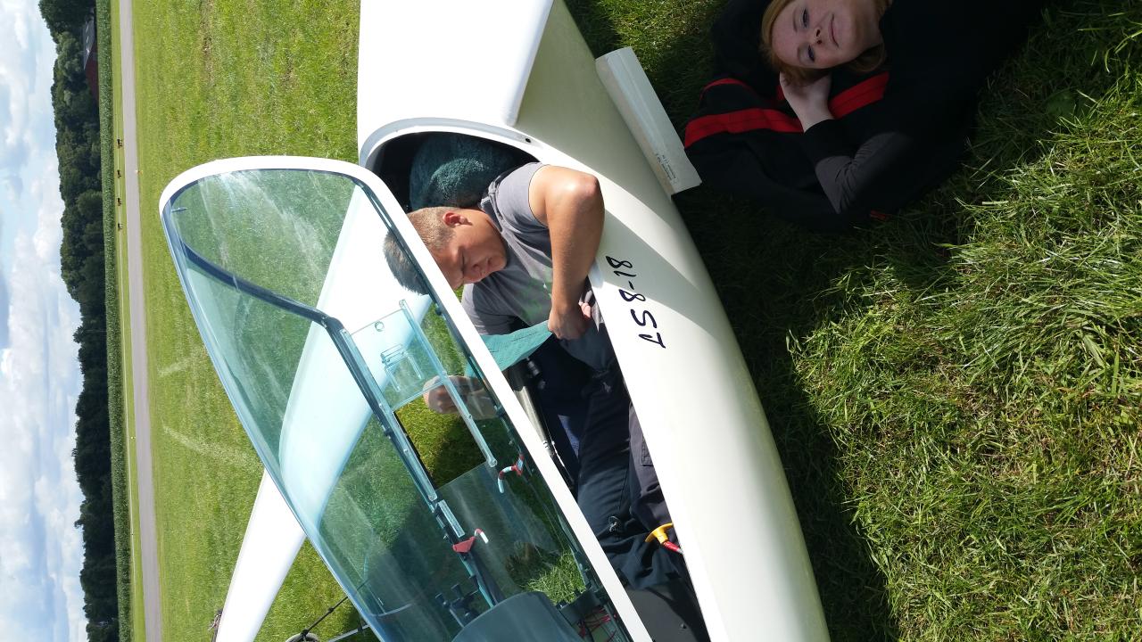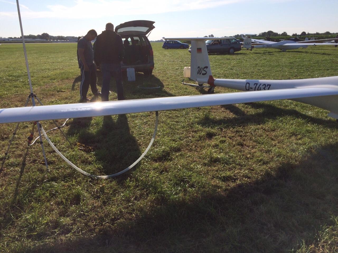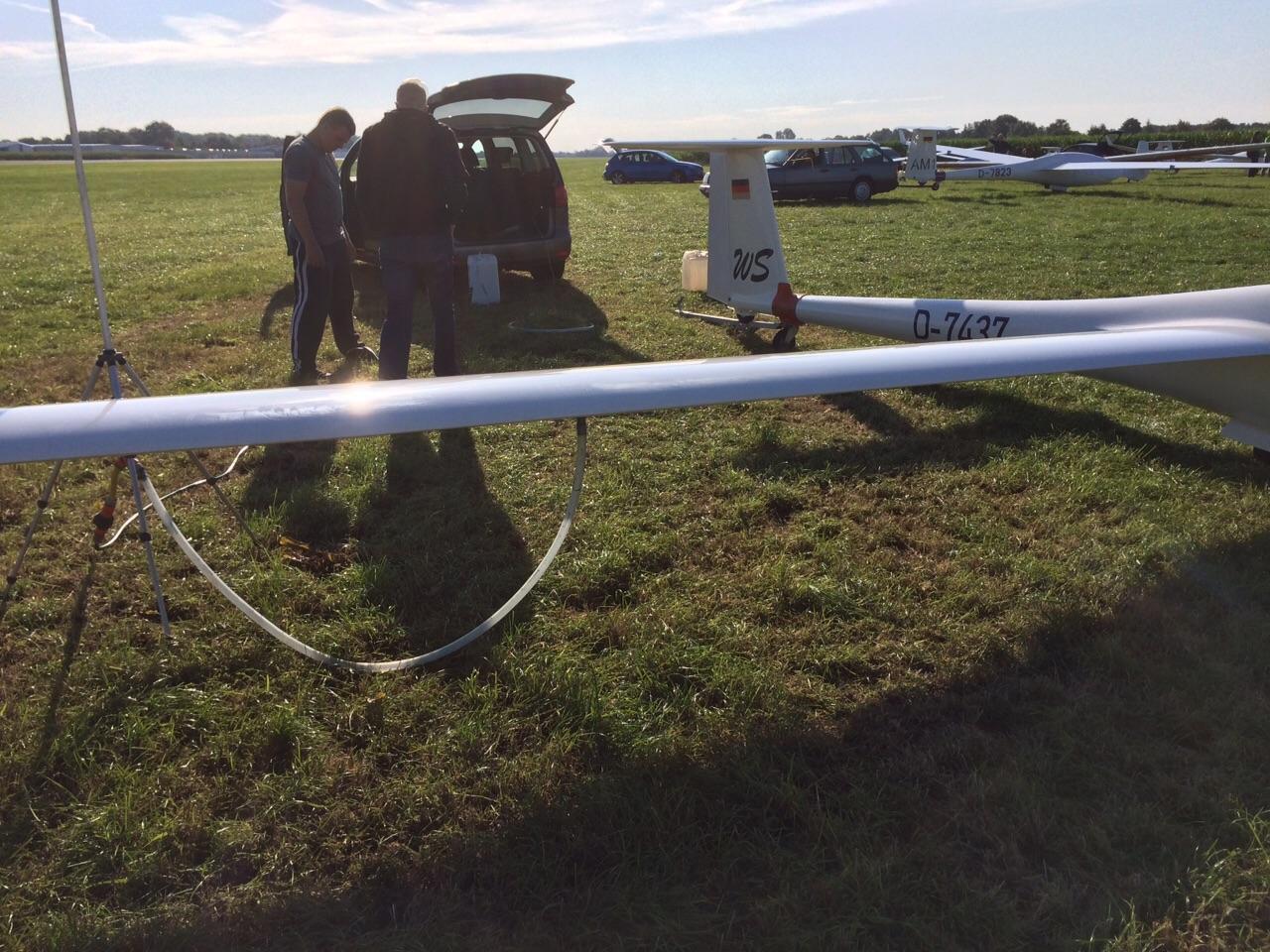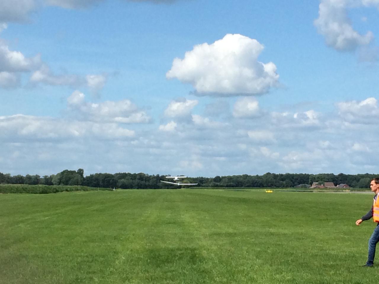 (Daniel Büenfeld). Für den heutigen Tag hatte sich Andre nochmal vorgenommen die LS8 gemütlich über dem Münsterland auszuführen und dabei ein paar Plätze gut zu machen. Leider hat sich das Wetter aber erst sehr spät am Tag entwickelt so dass die Wettbewerbsleitung die Standardklasse bereits um 12.00 Uhr neutralisiert hat. Wir haben den Tag dann genutzt um unser Lager bereits ein wenig aufzuräumen und bei Dodgeball Cup in Stadtlohn vorbei zu schauen. Ebenso haben wir uns um die Standbesetzung für das Flugplatzfest gekümmert - auch im Jahr 2015 dürfen wir Gustav Fröhlich mit seinem Sortiment zu unserm Fest begrüßen. Nun freuen wir uns auf die Abschlussfete wo wir uns nochmal von bester Oeventroper Seite präsentieren wollen. Morgen geht es dann wieder in die Heimat und wir freuen uns auf die nächten Flüge in Oeventrop.