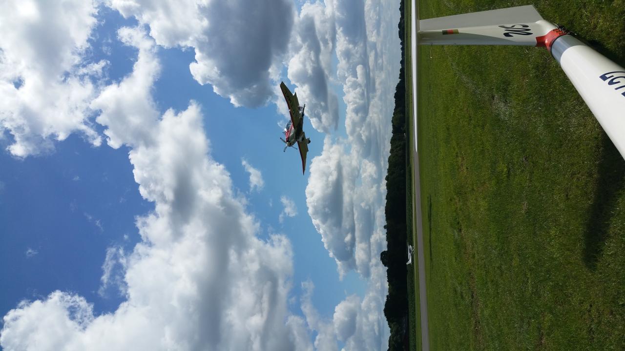 12:35 - Andre ist gestartet. Für uns heißt es jetzt Daumen drücken, dass Andre wieder hier am flugplatz ankommt.