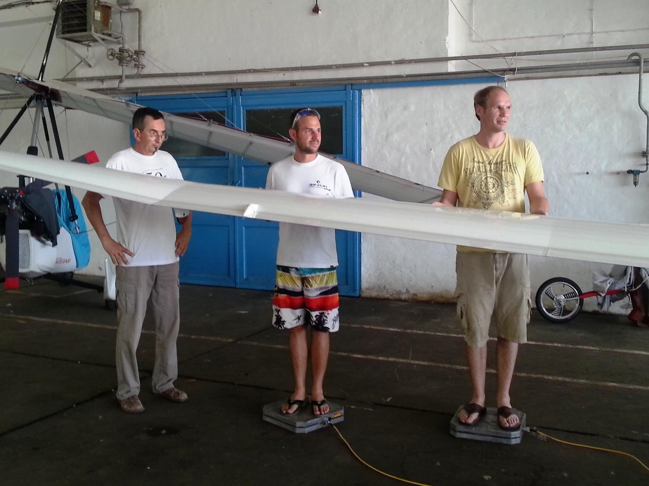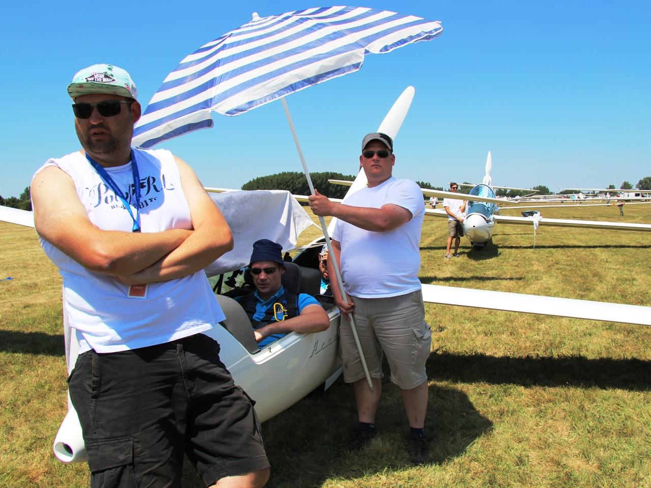 Marco und Sebastian waren schon beim Wiegen und haben das Flugzeug ins Grid gezogen.