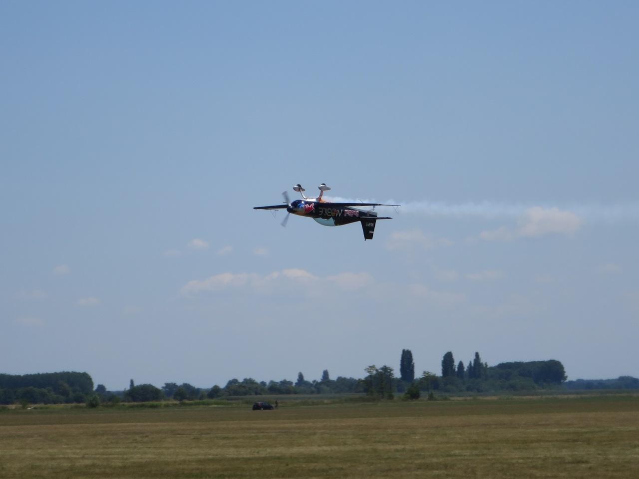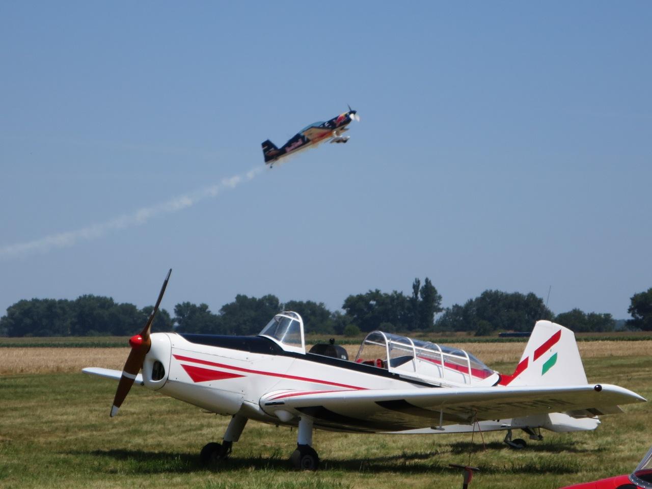 Im Anschluss gab es für Teilnehmer und Besucher ein kleines Unterhaltungsprogramm. Höhepunkt war der Kunstflug vom Red Bull Air Race Pilot und ungarischen Lokalheld Peter Besenyei.