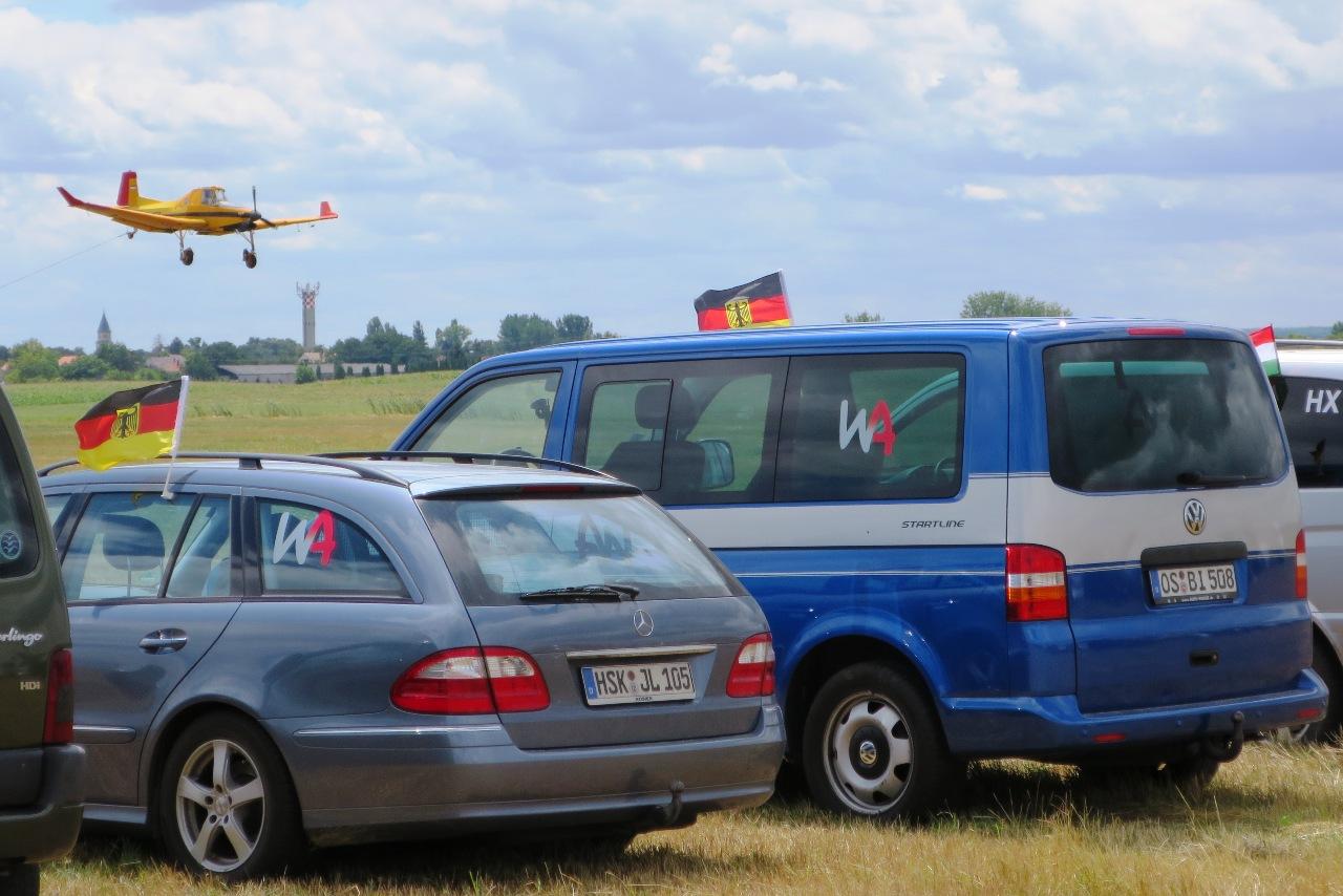 Nach einem Zwischenstopp auf dem Flugplatz Passau-Fürstenzell sind wir gestern Abend in Öscény angekommen und haben Wohnwagen, Wohnmobil und Zelte im deutschen Camp eingerichtet.