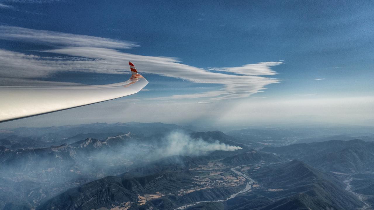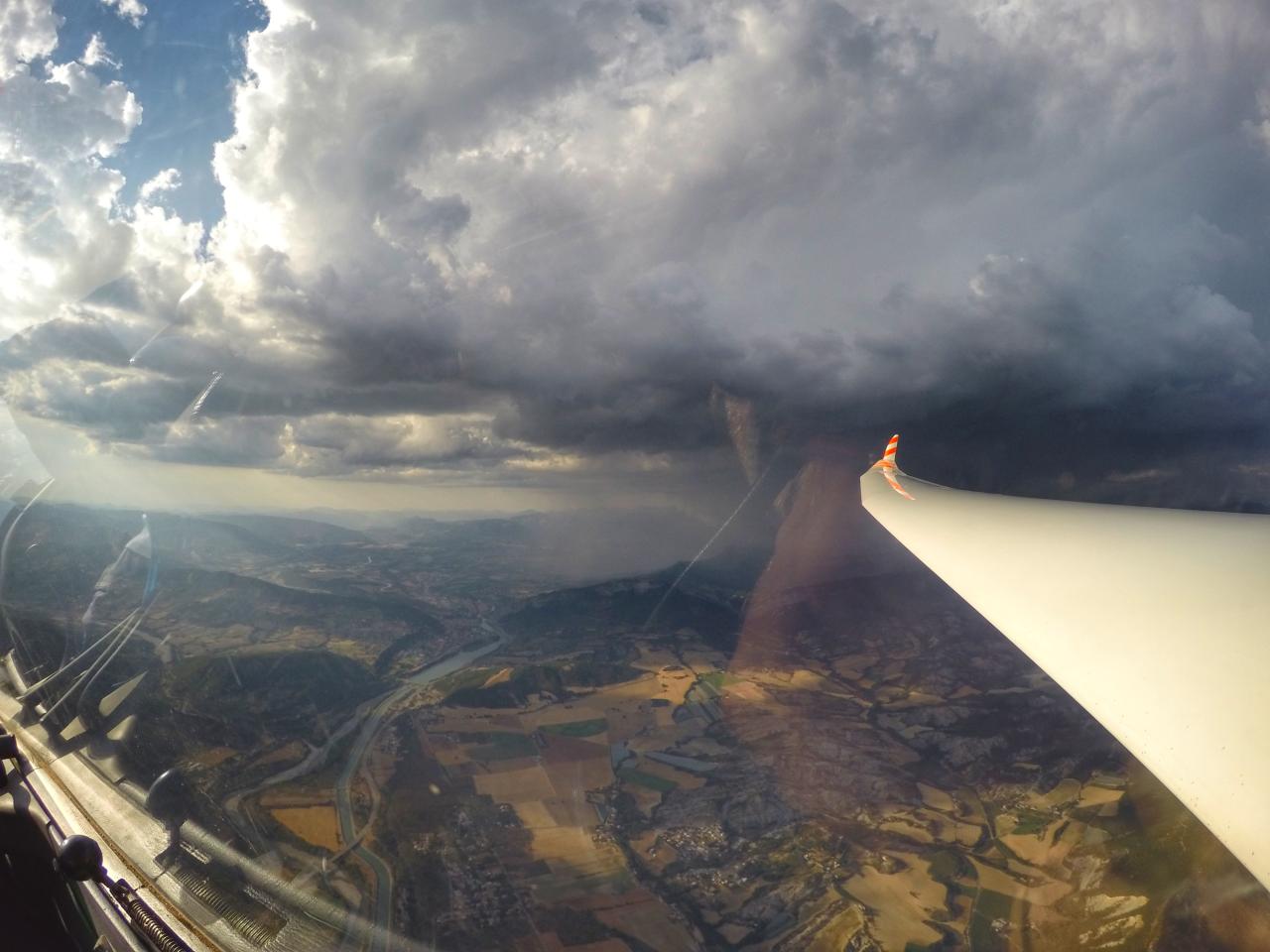 Die folgende Woche begann dann aber wieder mit besserem Wetter und einer interssanten Mischung aus Thermik und Wellenwetterlagen, die wir nutzten. Leider waren ein auch immer wieder Schauer eingelagert, die unsere Flüge in einige Richtungen einschränkten und mich am letzten Tag auch noch einmal außerhalb von Saint Auban landen ließen. Dennoch lieferte diese von einer nordwestlichen Strömung geprägte Wetterlage mit viele interessante Eindrücke, wir konnten imposante Wolkenformen ebenso bestaunen wie die Angriffe von Löschflugzeuge auf einen Waldbrand, der in den trotz einzelner Schauer noch staubtrockenen Landschaft ausgebrochen war.