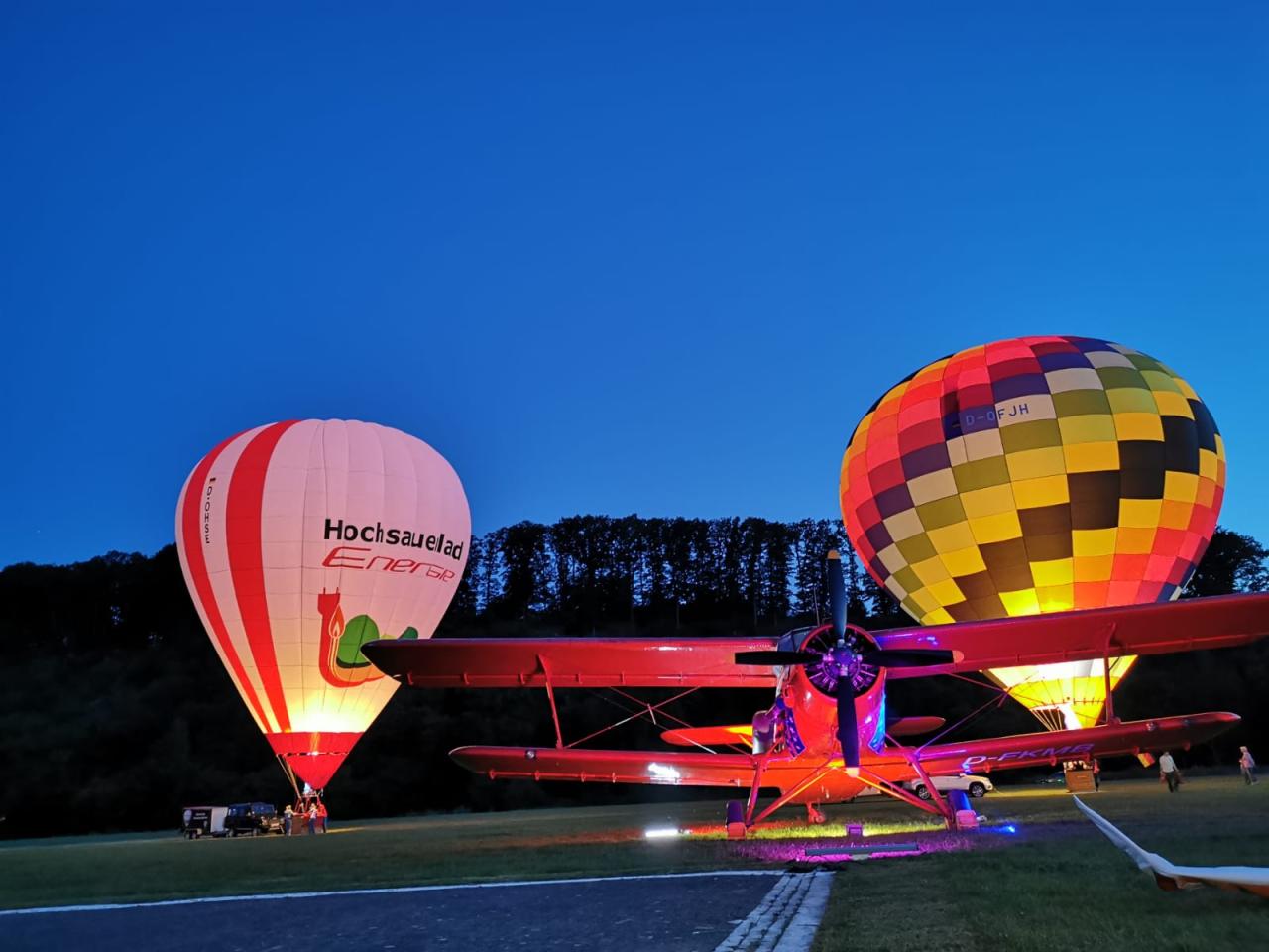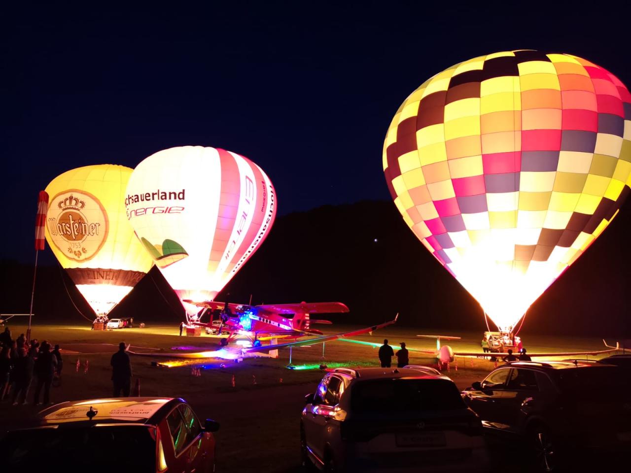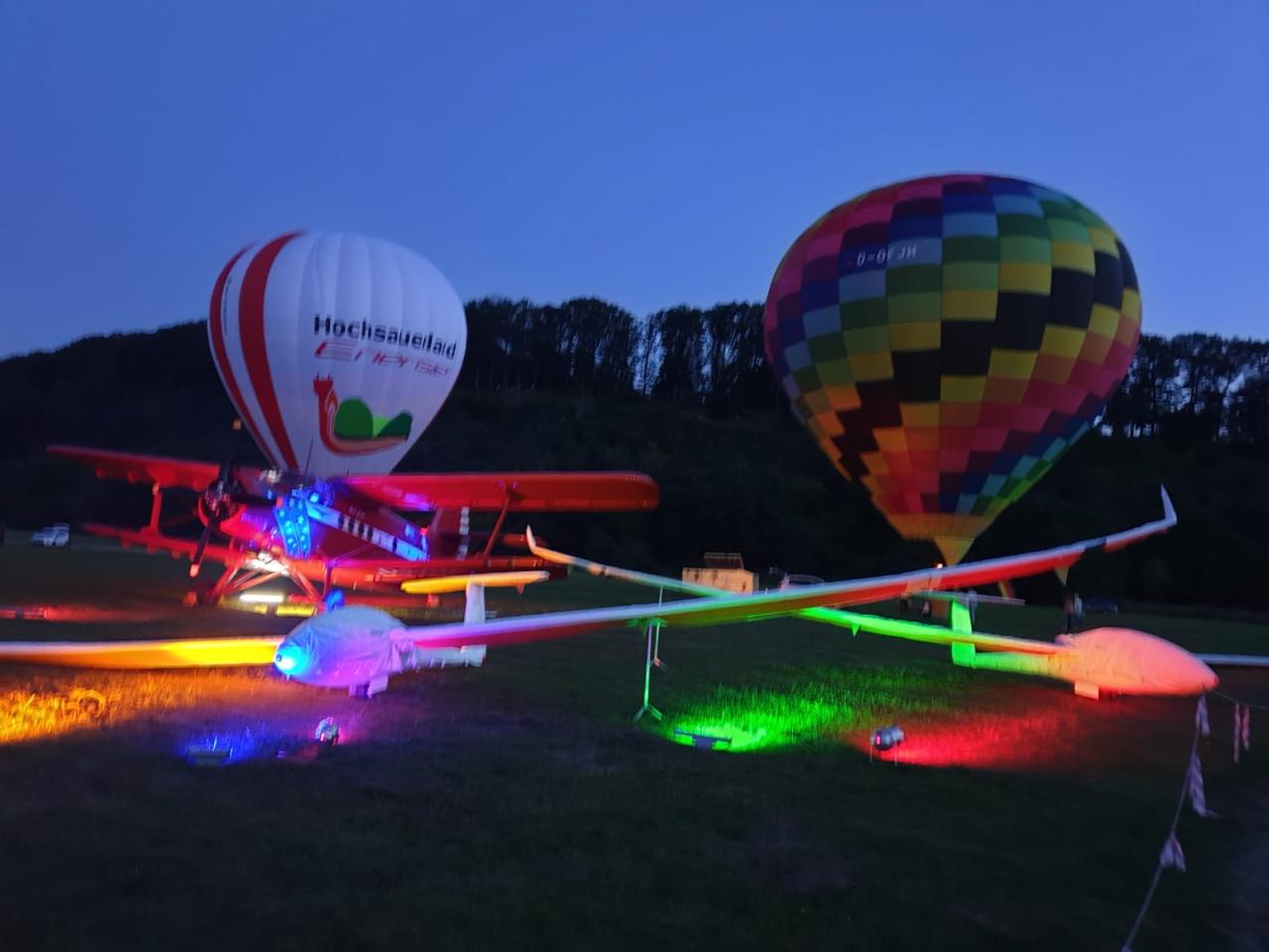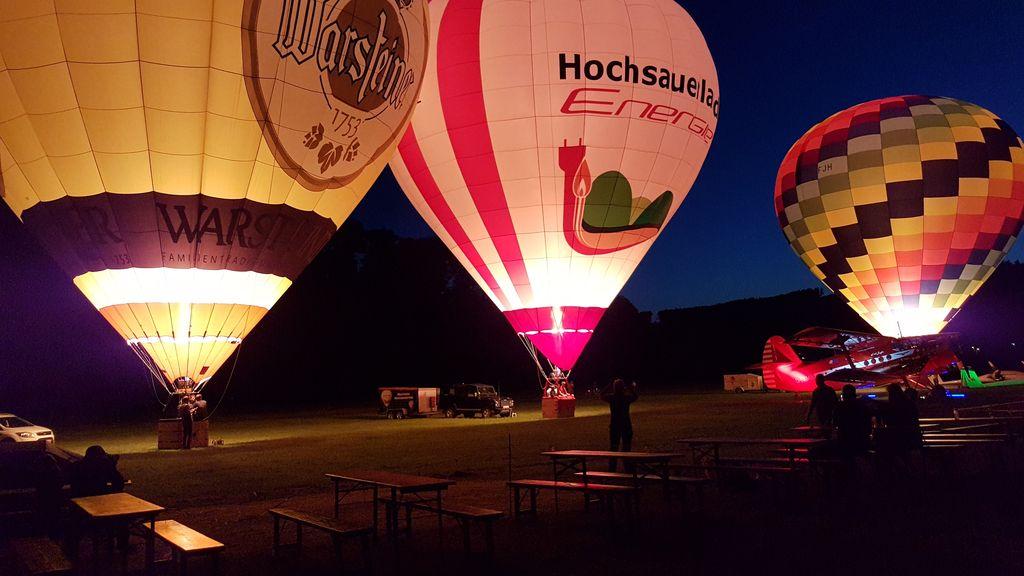 Ein Highlight war dieses Jahr sicherlich auch der Samstagabend. Drei Heißluftballone erleuchteten beim Nightglow die Ruhrwiesen vor der stimmungsvoll angestrahlten Antonov. Bei stimmungsvoller Musik ließen viele Besucher so den Abend gemütlich ausklingen.