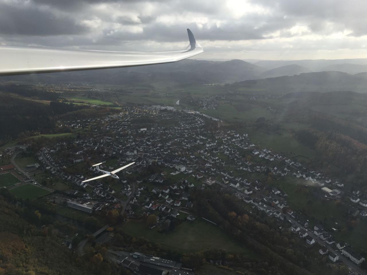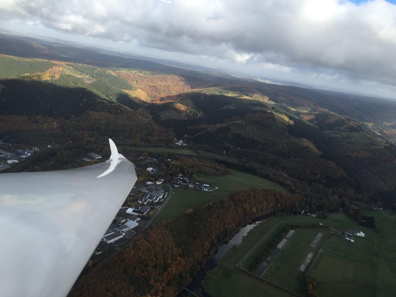 Bereits morgens fanden sich einige Piloten – hauptsächlich aus der Schulgruppe - am Flugplatz ein und bauten den Flugbetrieb auf. Nachdem das Wetter morgens noch eher grau war, wurde es zum Mittag hin zunehmend besser. So konnten wir sogar einige, auch längere Thermik-Flüge bei sonnigem Herbstwetter machen. In Sachen Ausbildung geht es auch in dieser Jahreszeit voran, Michel Schneider erflog sich mit seinem ersten 30-Minuten Flug eine wichtige Voraussetzung für seine C-Prüfung!