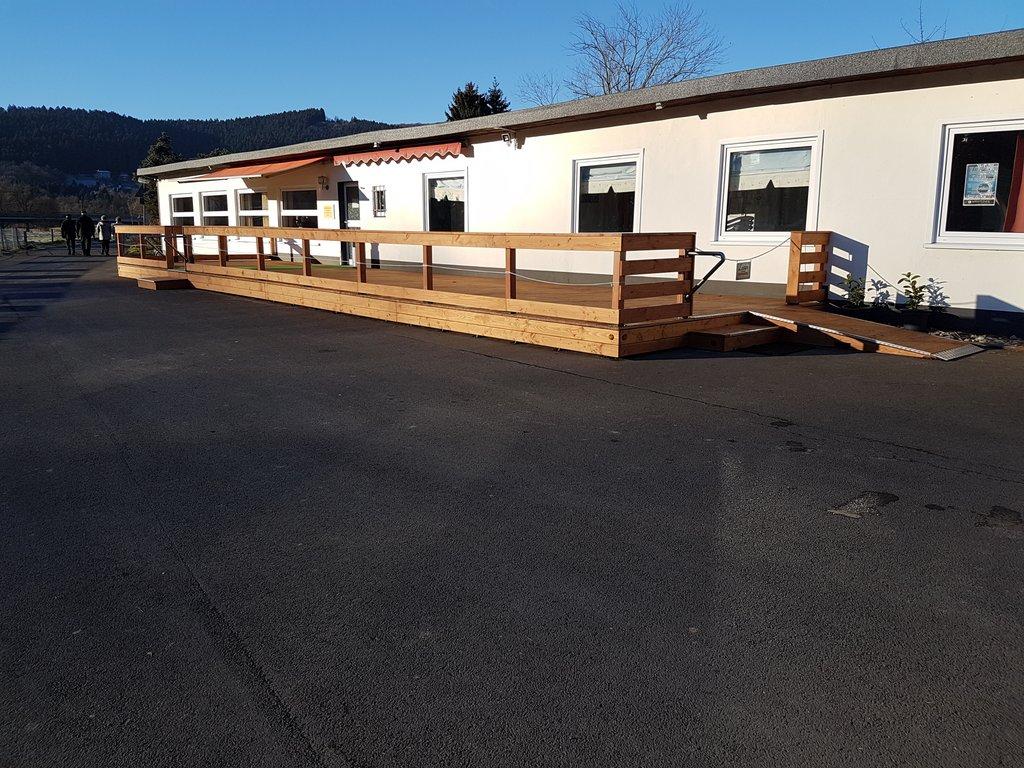 Vor ca. 2 Jahren wurde der Vorschlag zum Bau eines Terrassenbaus vor dem Spatzennest von Wolfgang Löser vorgestellt. Nach der Planungs- und Spendenphase konnte nun im Oktober 2016 der Bau begonnen und realisiert werden. Dank einiger fleißiger Helfer (Dirk Gerstenköper, Patrick Voss. Udo Löser, Jörg Löser, Wolfgang Löser und einige Nachwuchsflieger) konnte der Bau in kurzer Zeit realisiert werden.